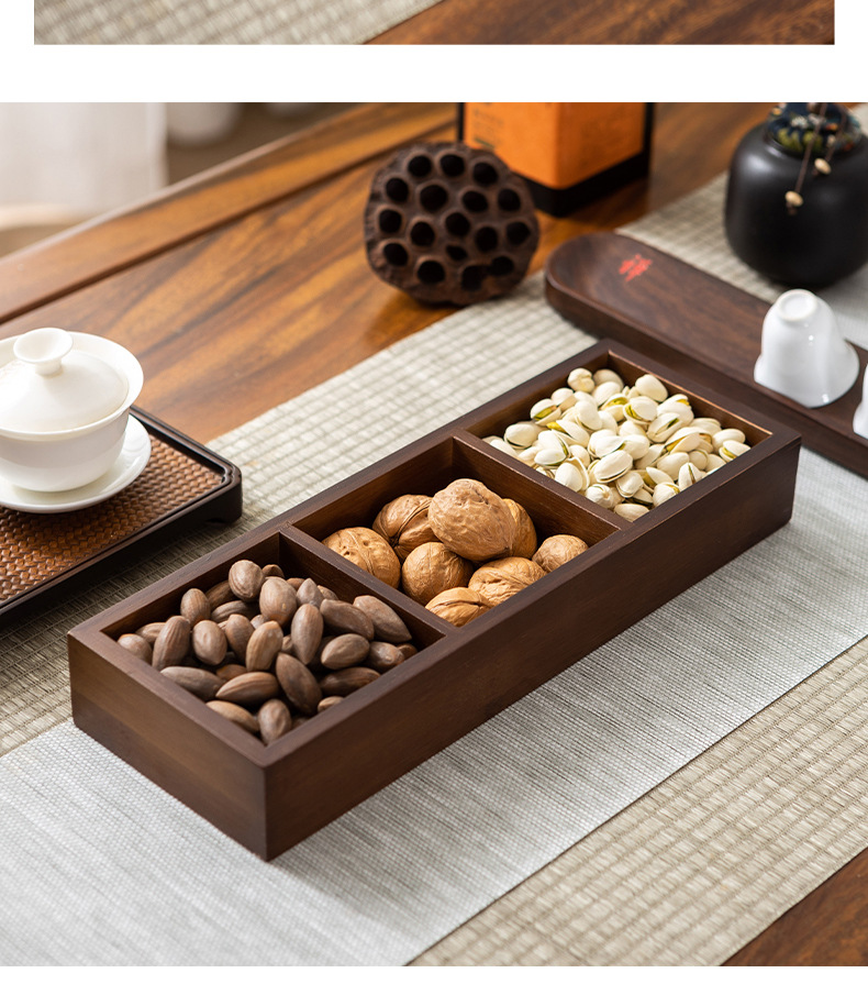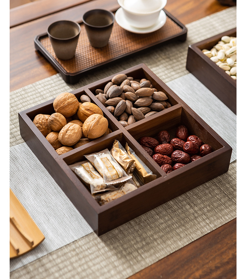 2023 새로운 라운드 스토브 티 트레이 과일 플레이트 스낵 플레이트 4 평방 나무 9 평방 말린 과일 플레이트