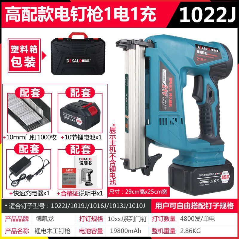 • 1022J 리튬 배터리 코드 네일 건 - 리튬 배터리 코드 네일 건 10개 섹션 높이, 배터리 1개 [무료 네일 1박스]