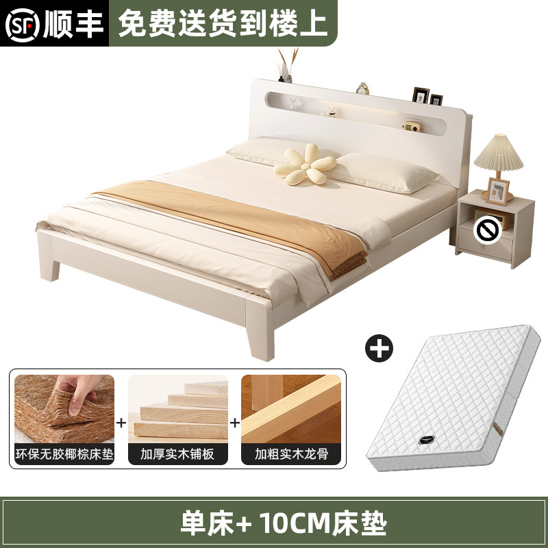 • 따뜻한 흰색 싱글 침대 + 10cm 매트리스 + 침대 옆 탁자 * 1 [위층 배송] 두껍고 환경 친화적입니다.