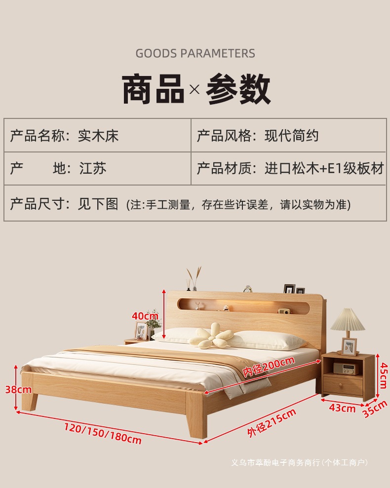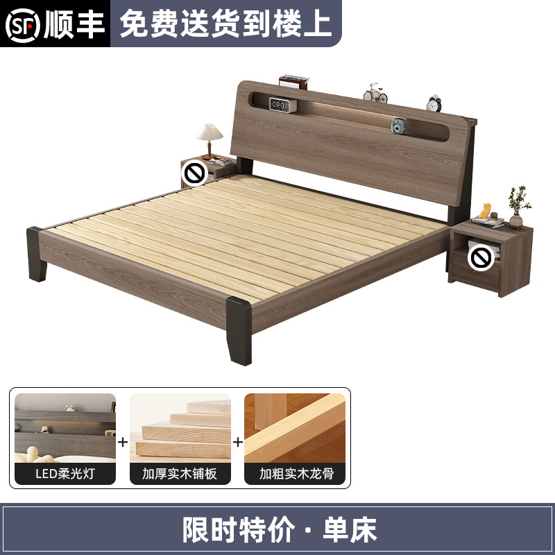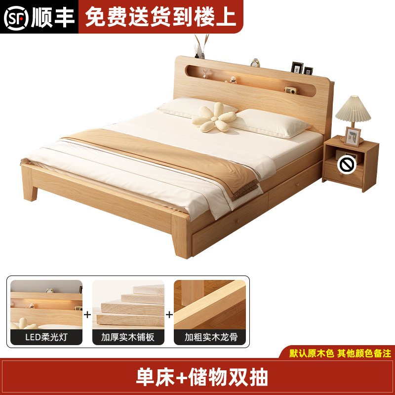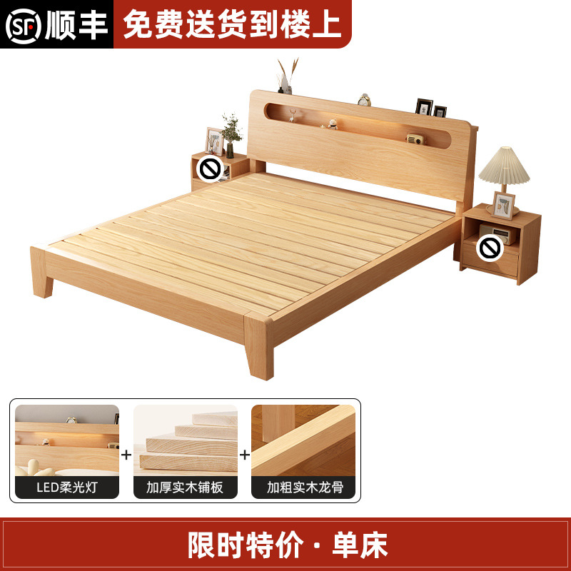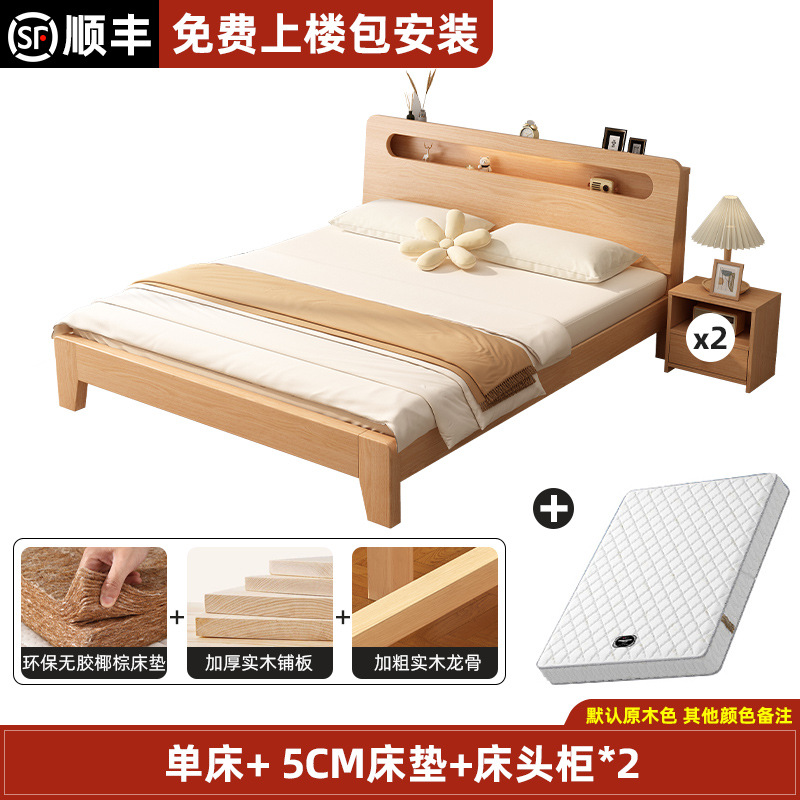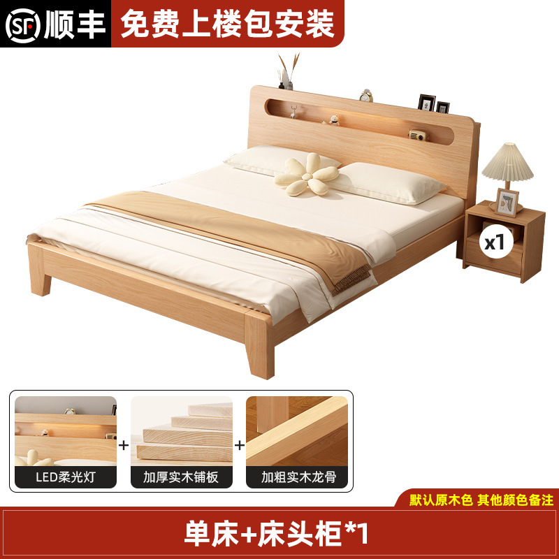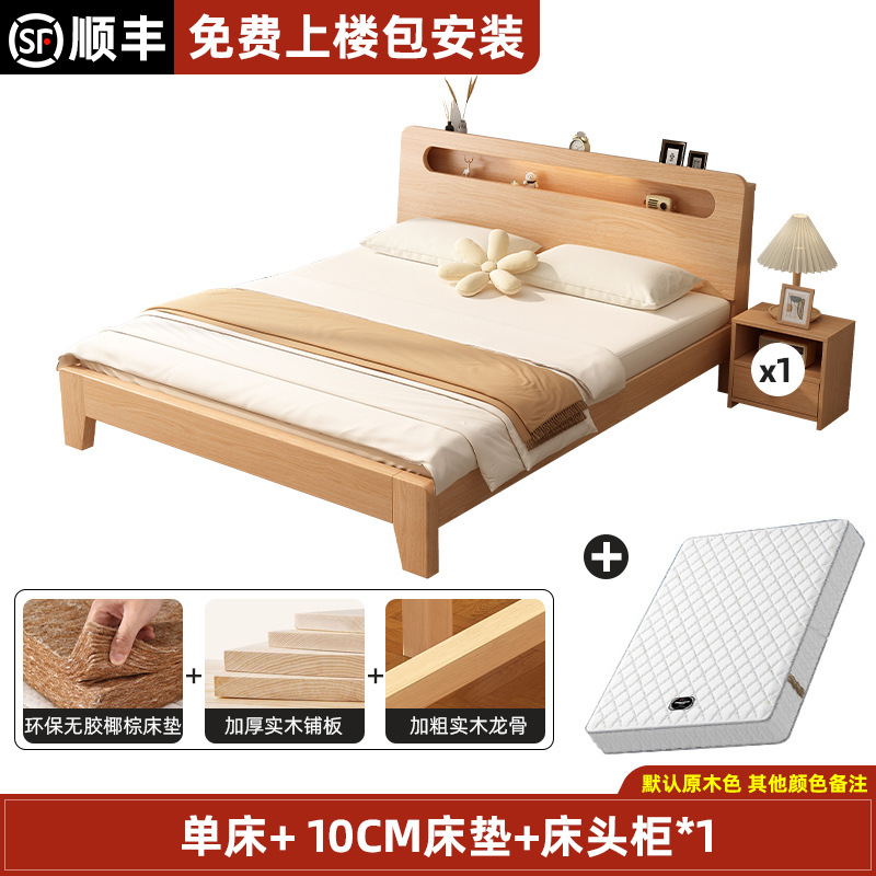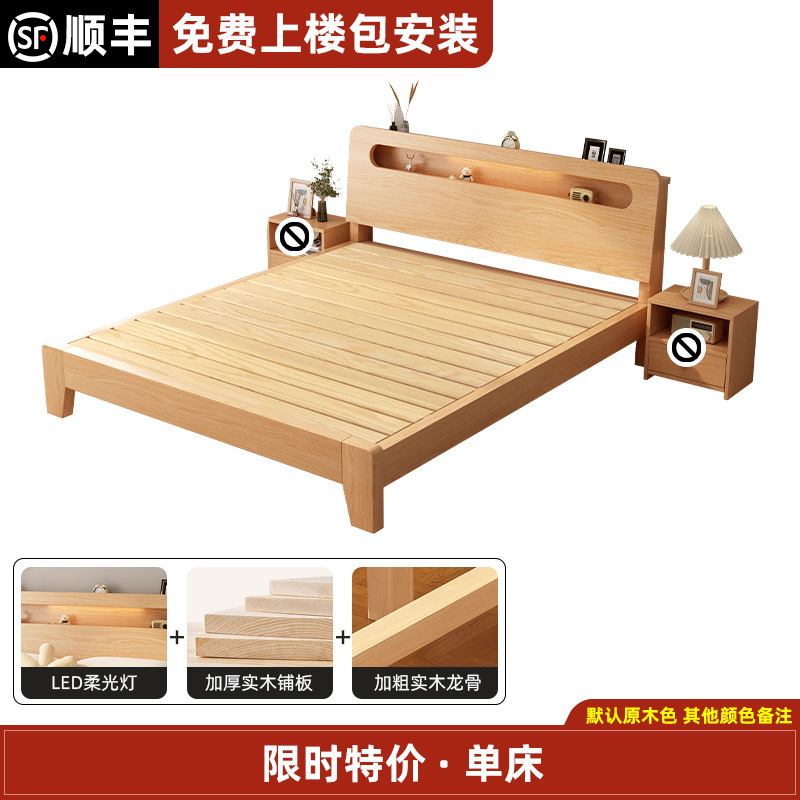 • 원목 컬러 싱글 침대 + 침대 옆 탁자*1 [위층 배송] 두꺼워지고 환경 친화적