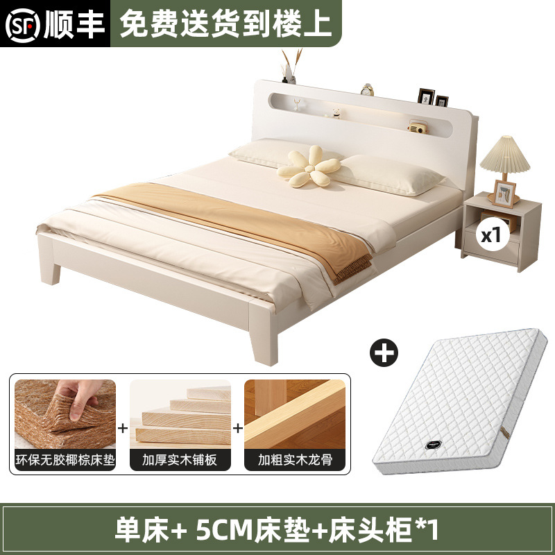 • 따뜻한 흰색 싱글 침대 + 5cm 매트리스 + 침대 옆 탁자 * 1 [위층 배송] 두껍고 환경 친화적입니다.