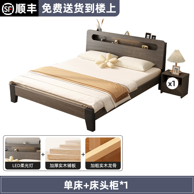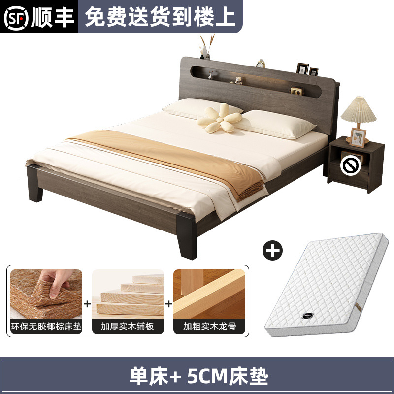 단단한 나무 침대 현대 간단한 1 미터 8 더블 침대 미터 공장 직접 1.5m 임대 룸 경제적 인 싱글 침대 프레임스토어 가기