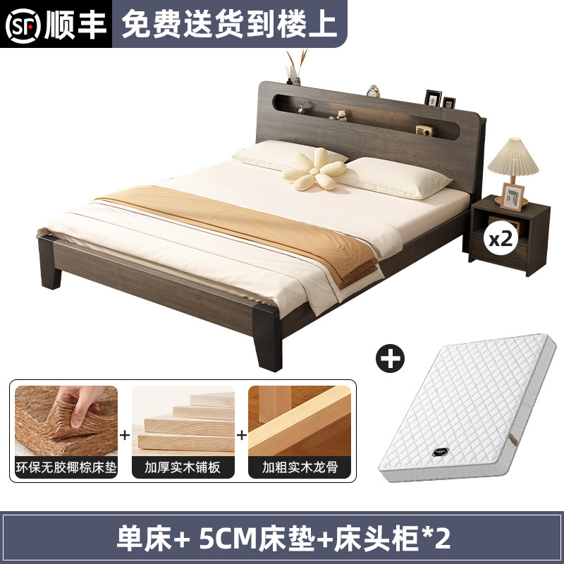 • [설치 포함 집으로 배송] 싱글 침대 + 5cm 매트리스 + 침대 옆 테이블 * 2 (색상 참고) 두꺼워지고 환경 친화적입니다.