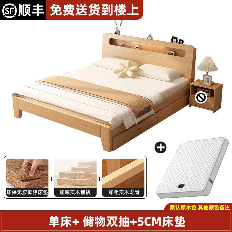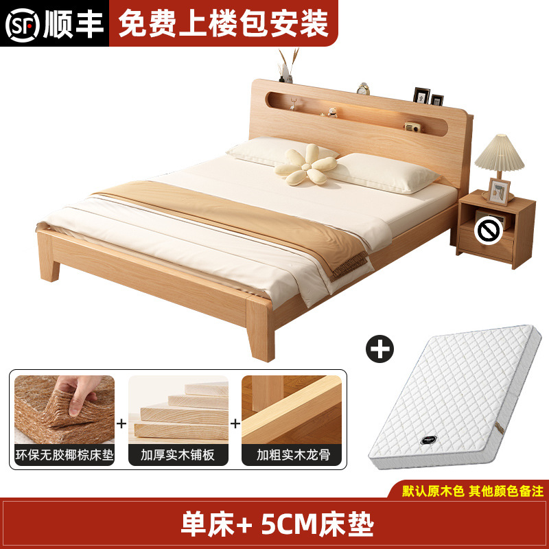 • 원목 컬러 싱글 침대 + 5cm 매트리스 [위층 배송] 두꺼워지고 환경 친화적
