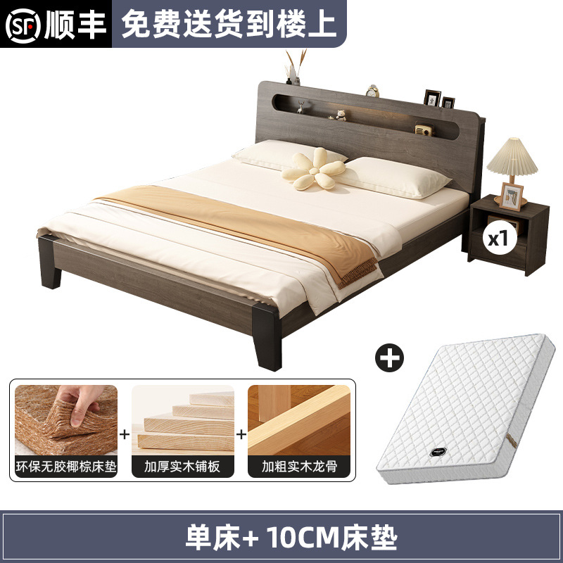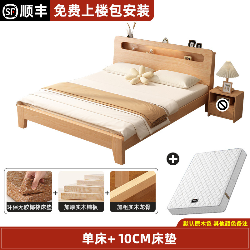 • 원목 컬러 싱글 침대 + 10cm 매트리스 [위층 배송] 두꺼워지고 환경 친화적
