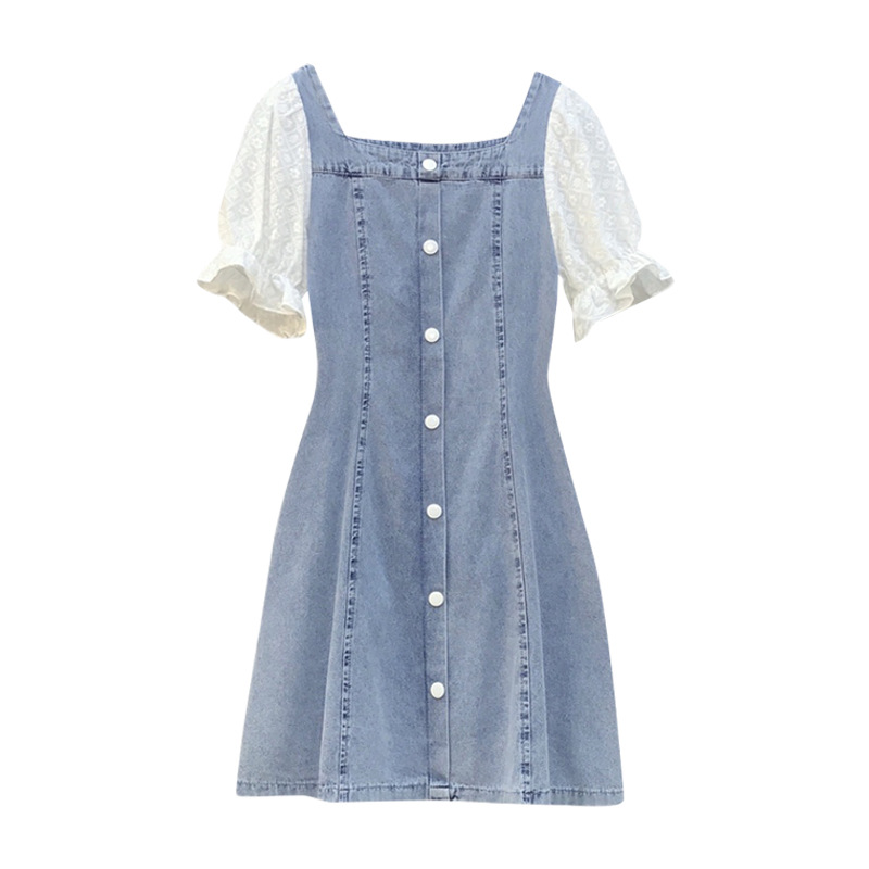 2025 새로운 고급 프랑스 스타일 퍼프 슬리브 데님 원피스 어린이 여름 디자인 센스 틈새스토어 가기