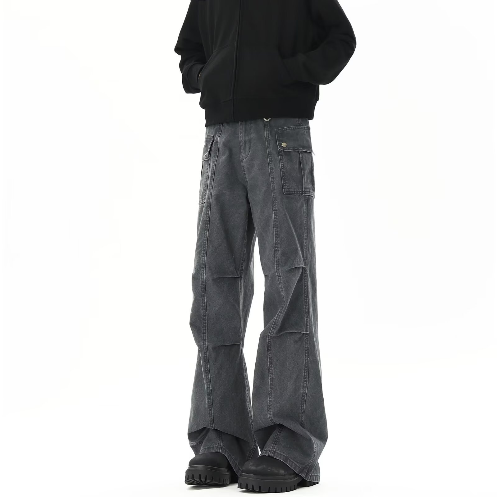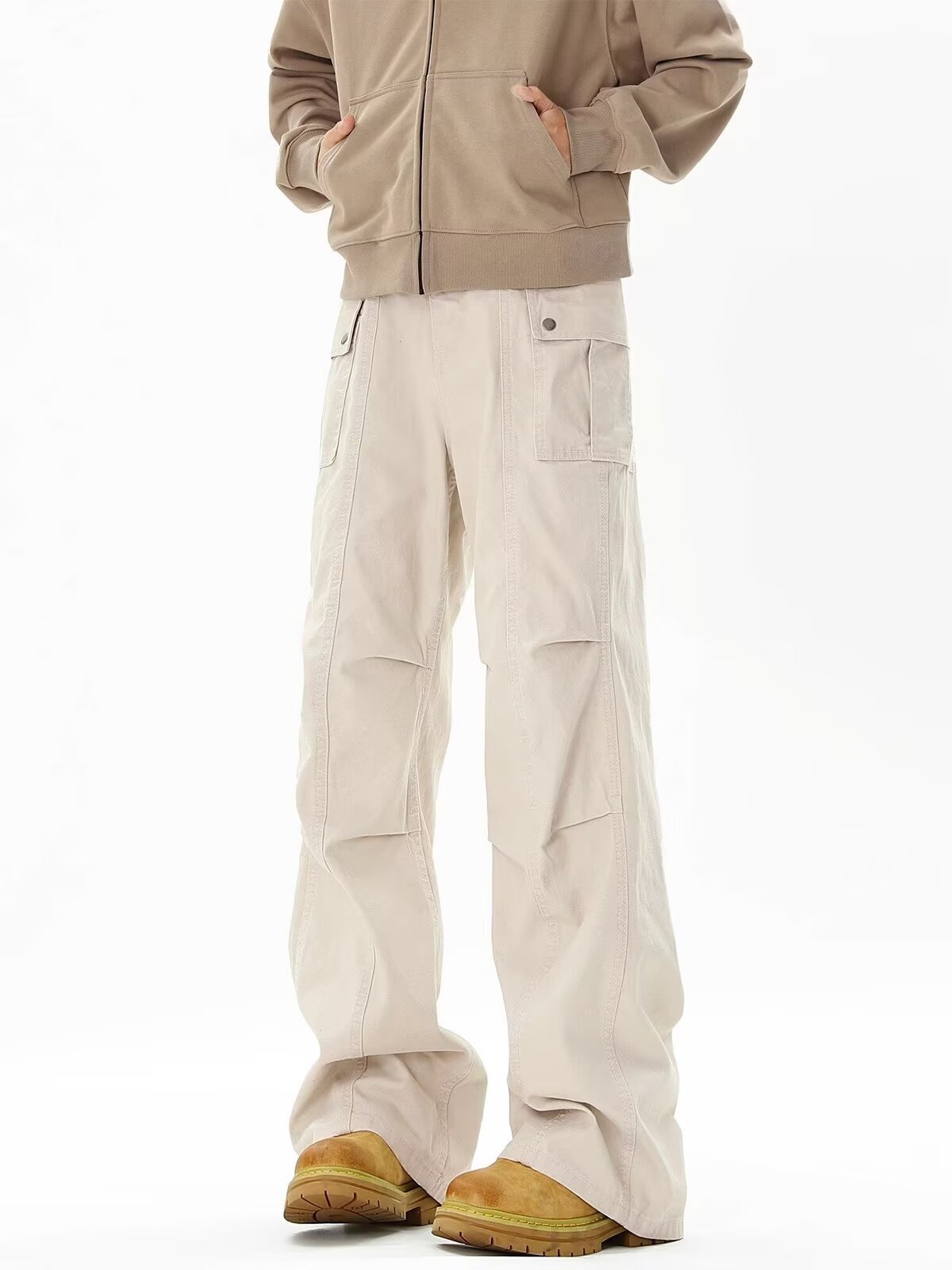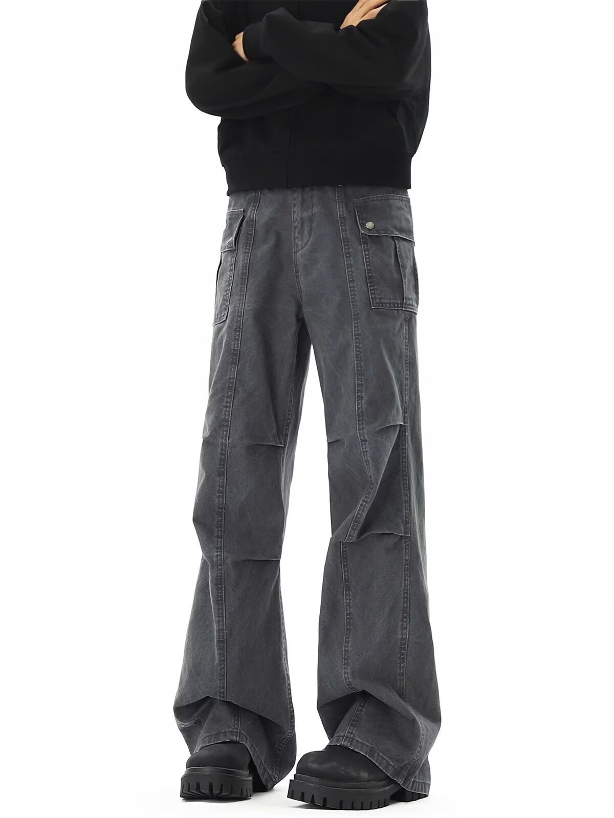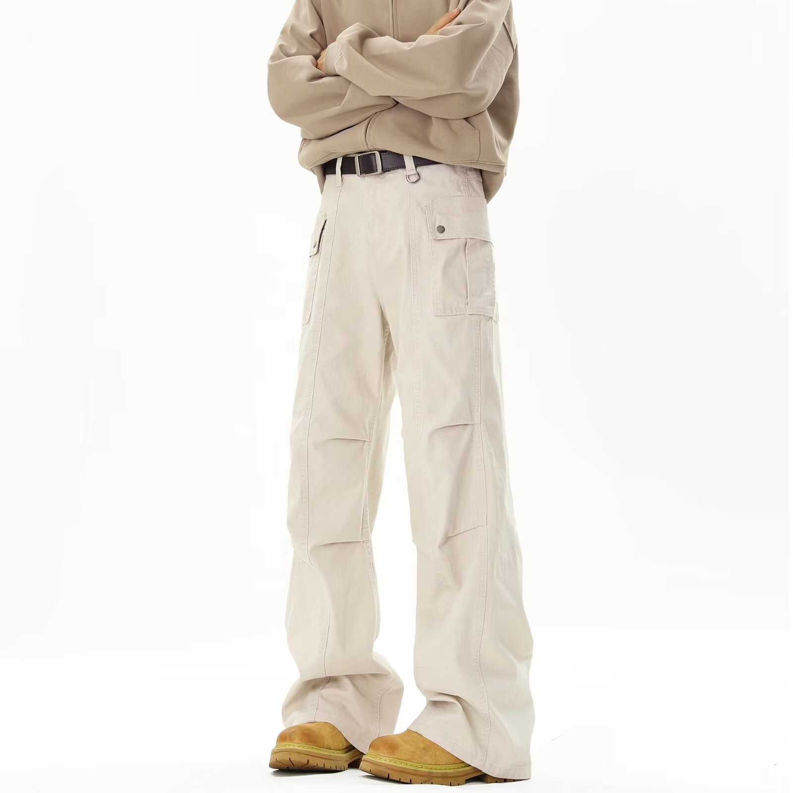 작업복 남성 2025 년 봄과 가을 새 씻은 오래된 주름 낙하산 바지 잘 생긴 느슨한 직선 캐주얼 바지