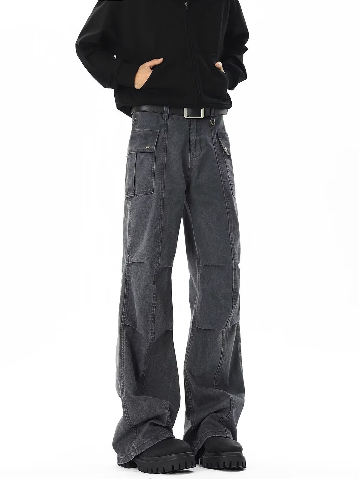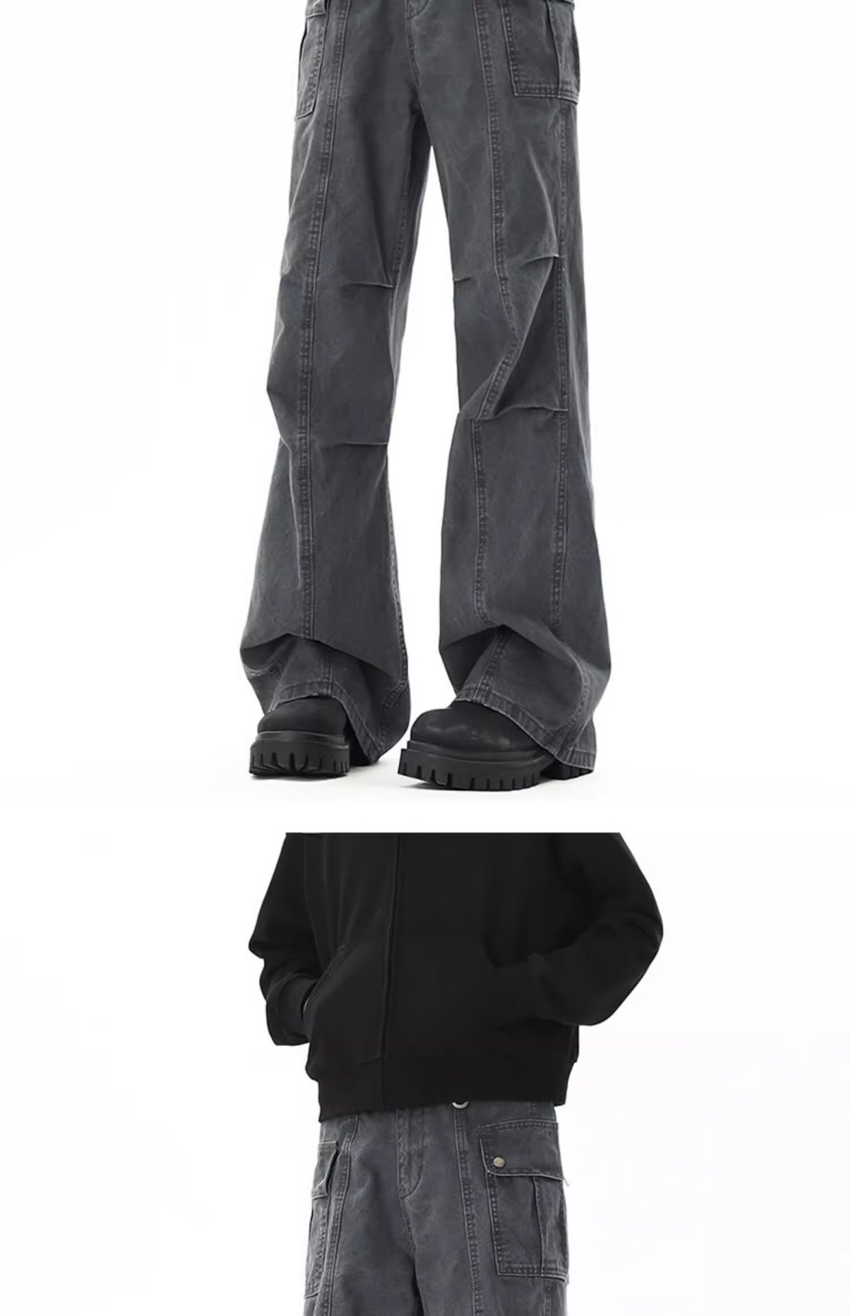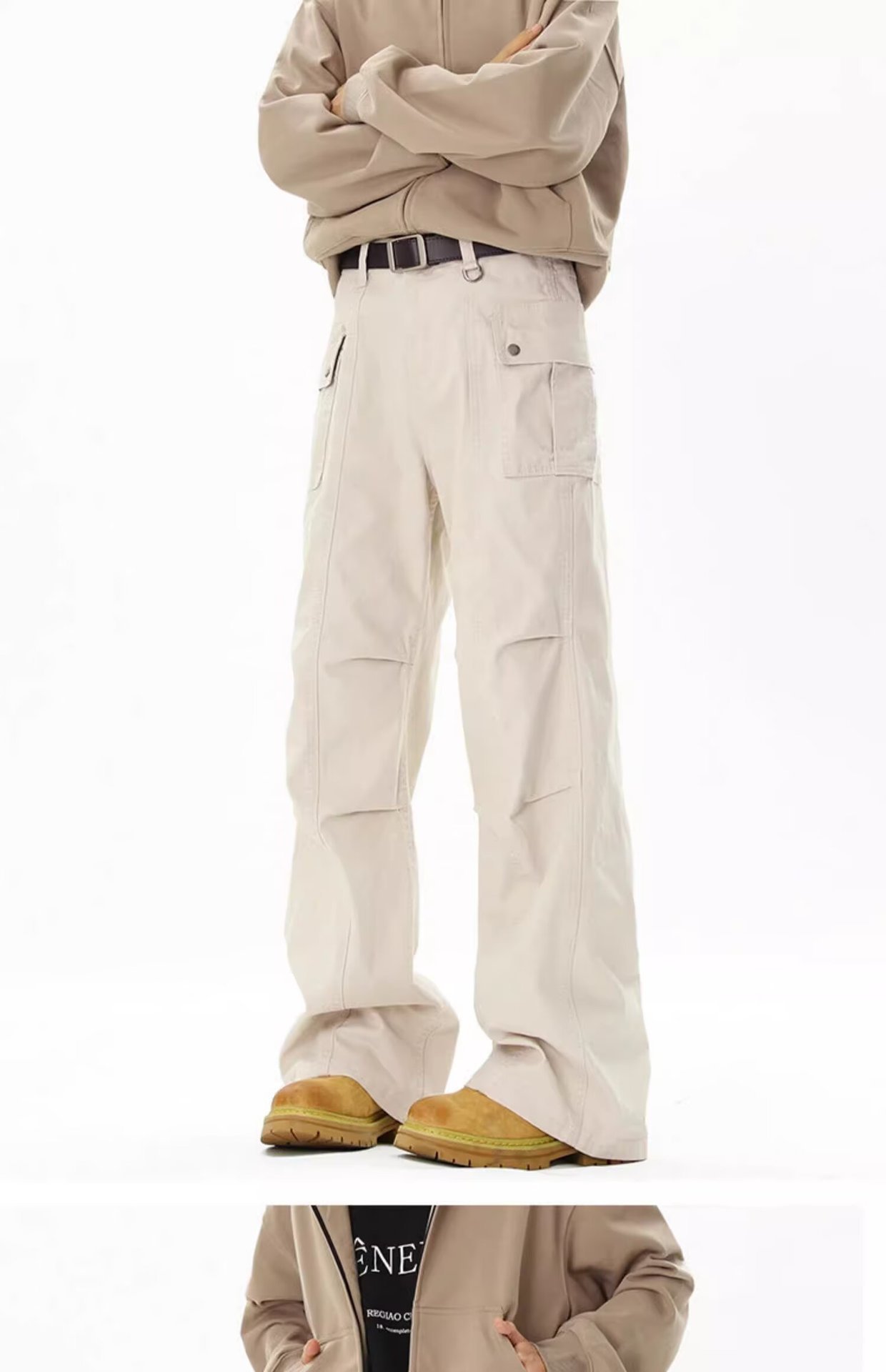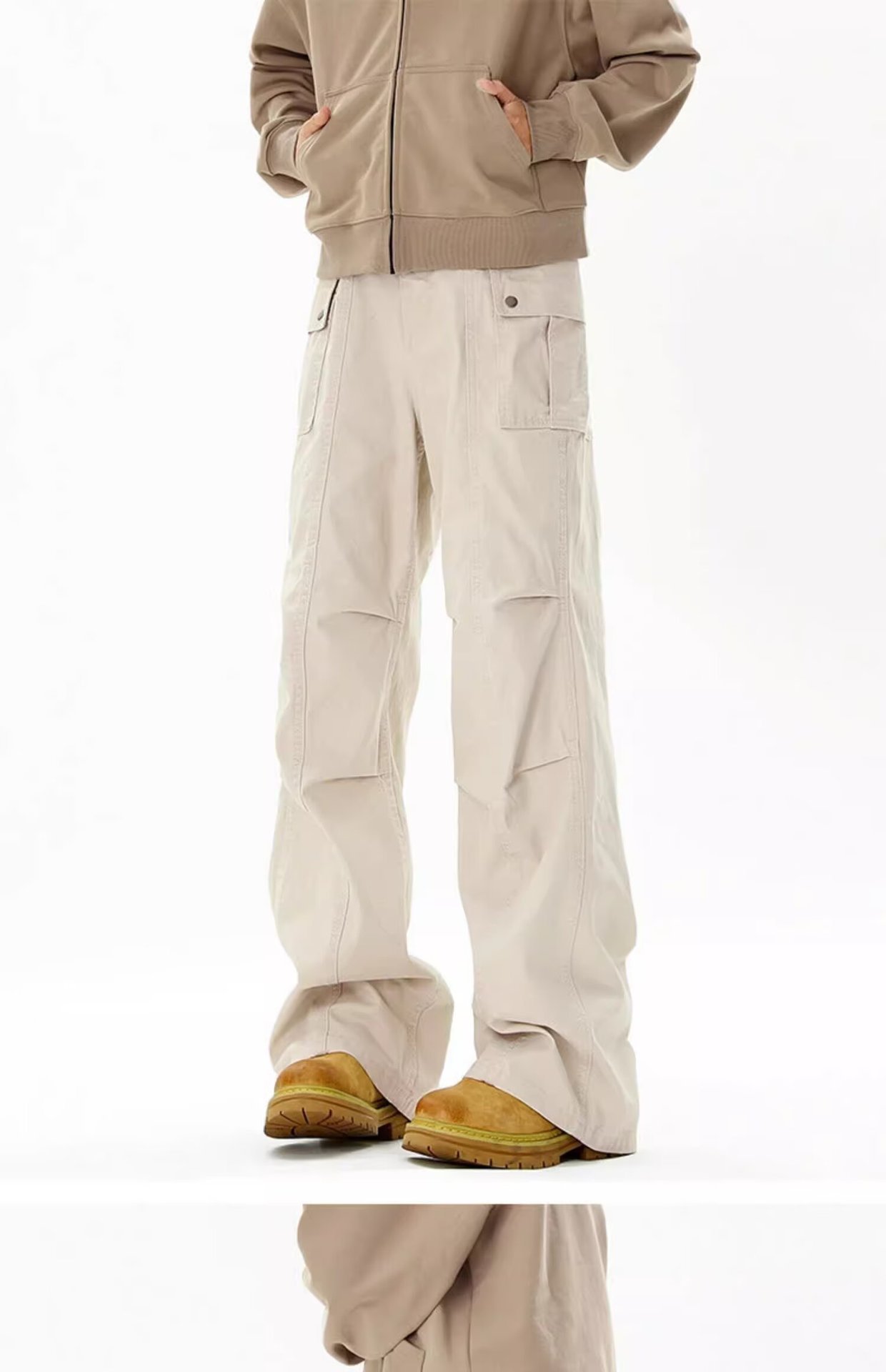 작업복 남성 2025 년 봄과 가을 새 씻은 오래된 주름 낙하산 바지 잘 생긴 느슨한 직선 캐주얼 바지