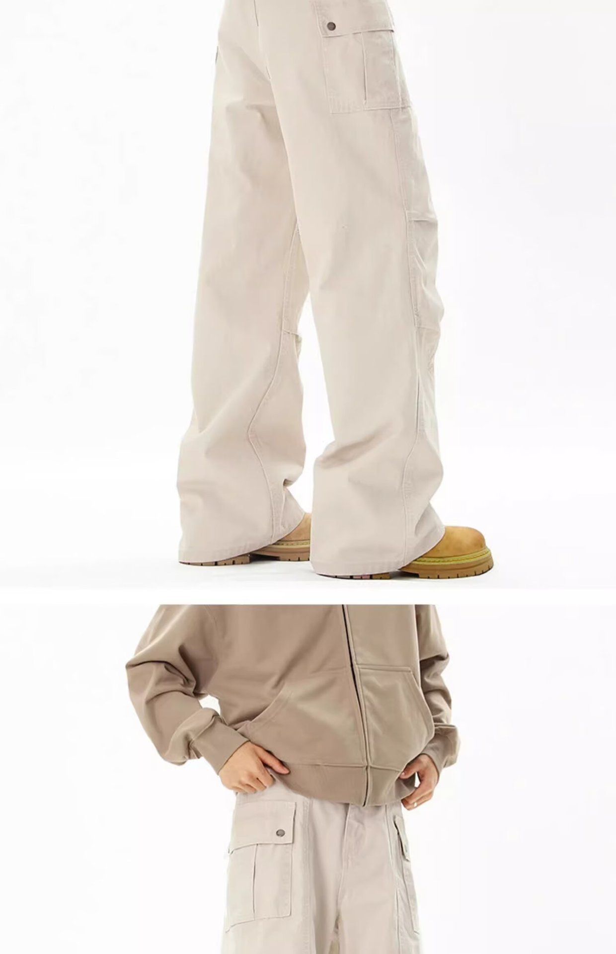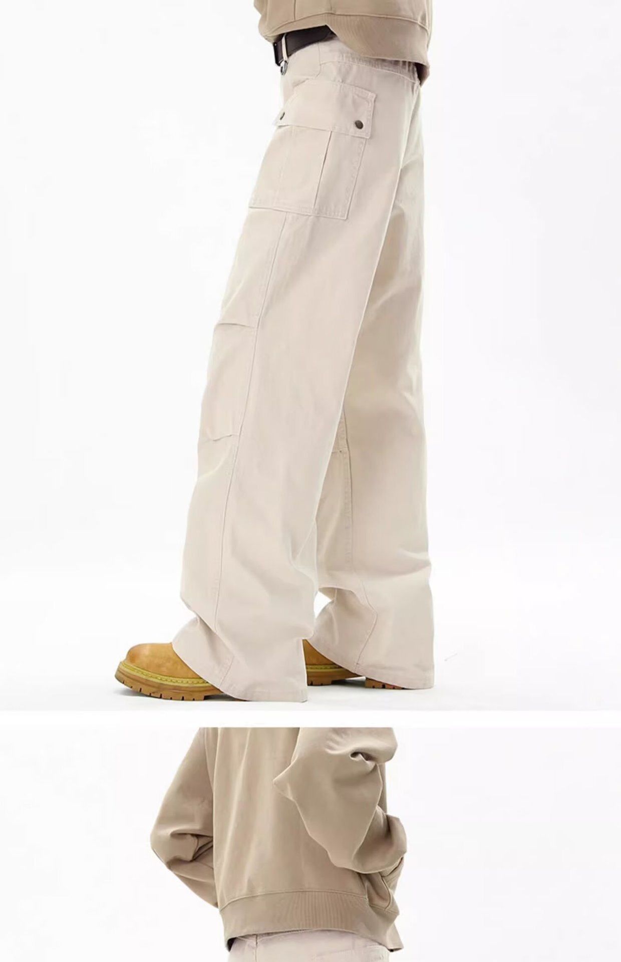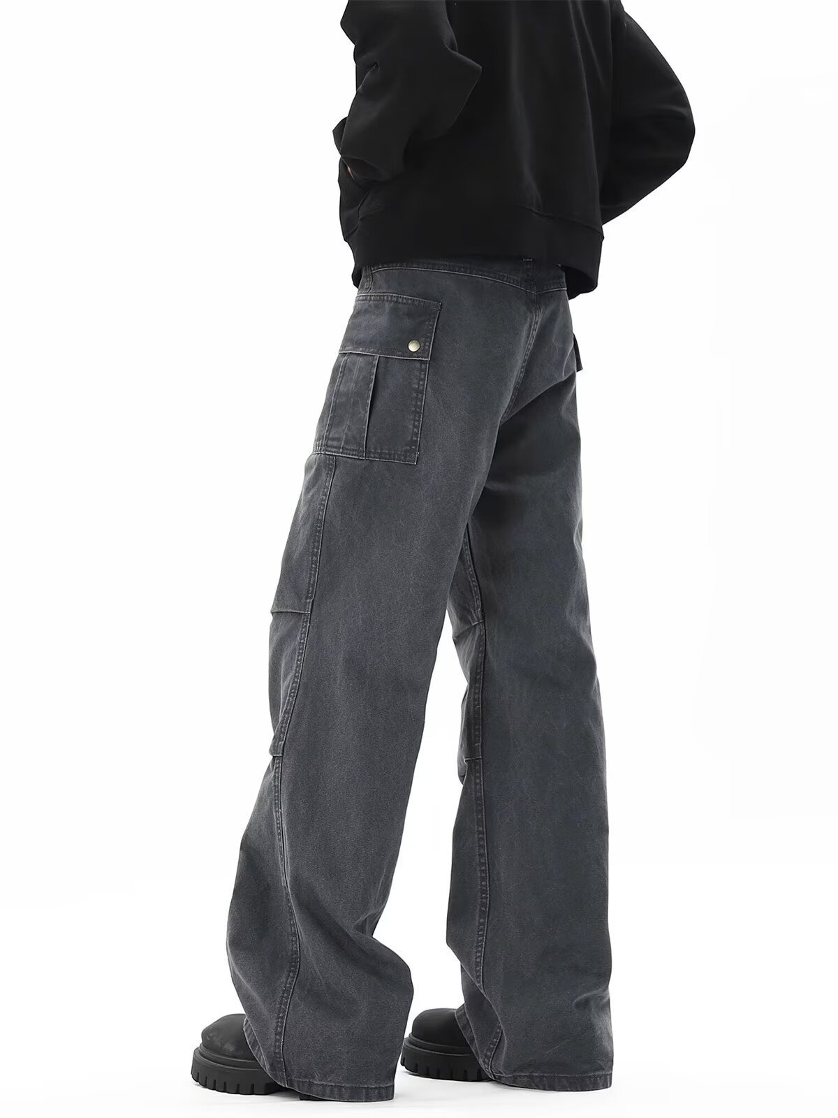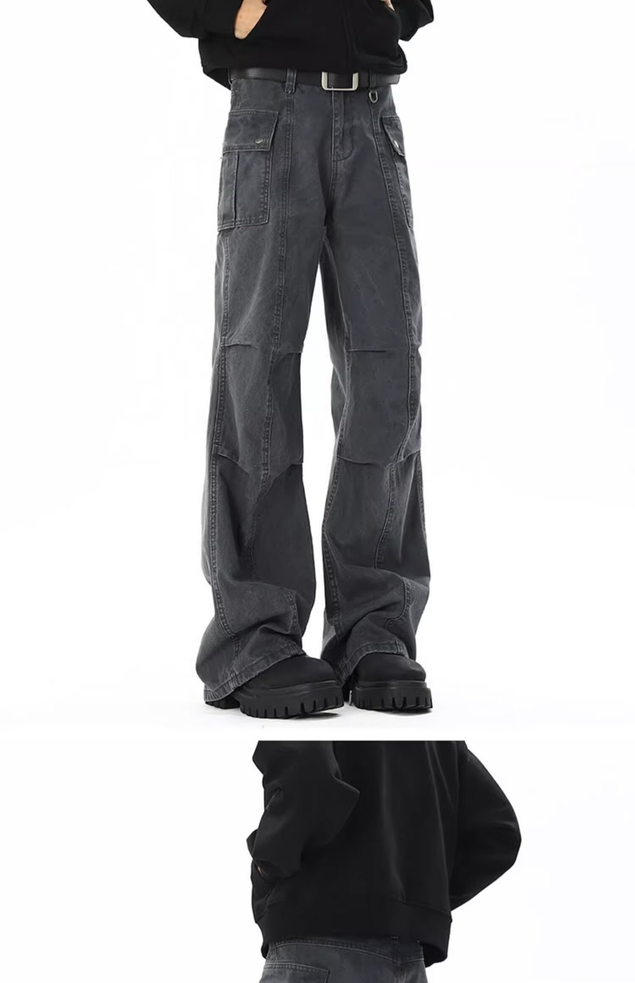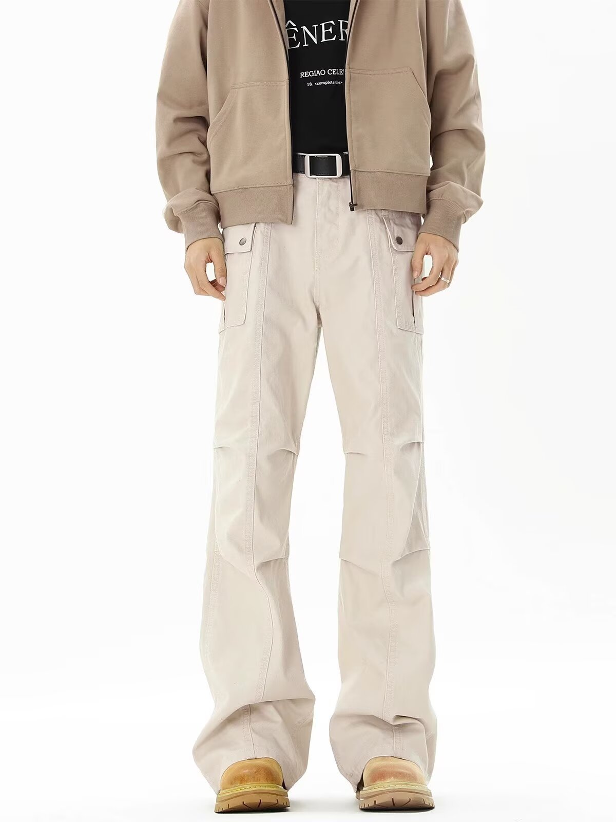 작업복 남성 2025 년 봄과 가을 새 씻은 오래된 주름 낙하산 바지 잘 생긴 느슨한 직선 캐주얼 바지