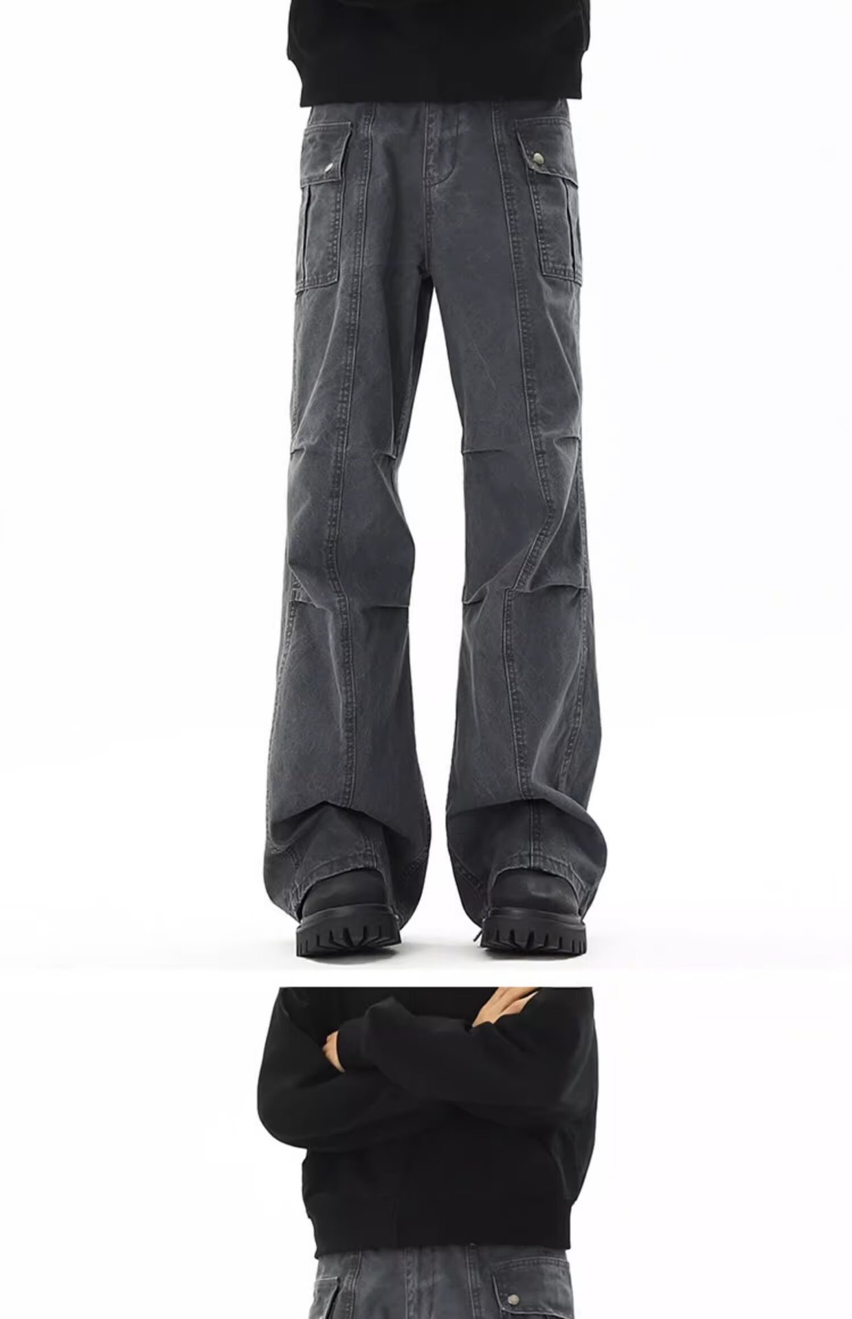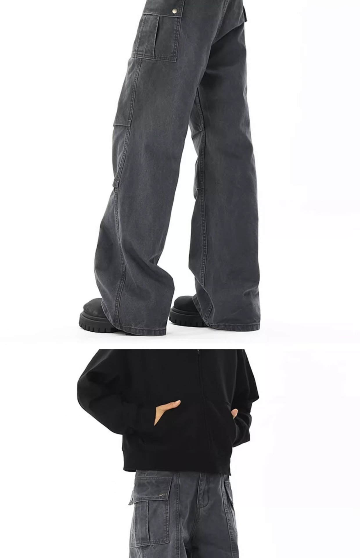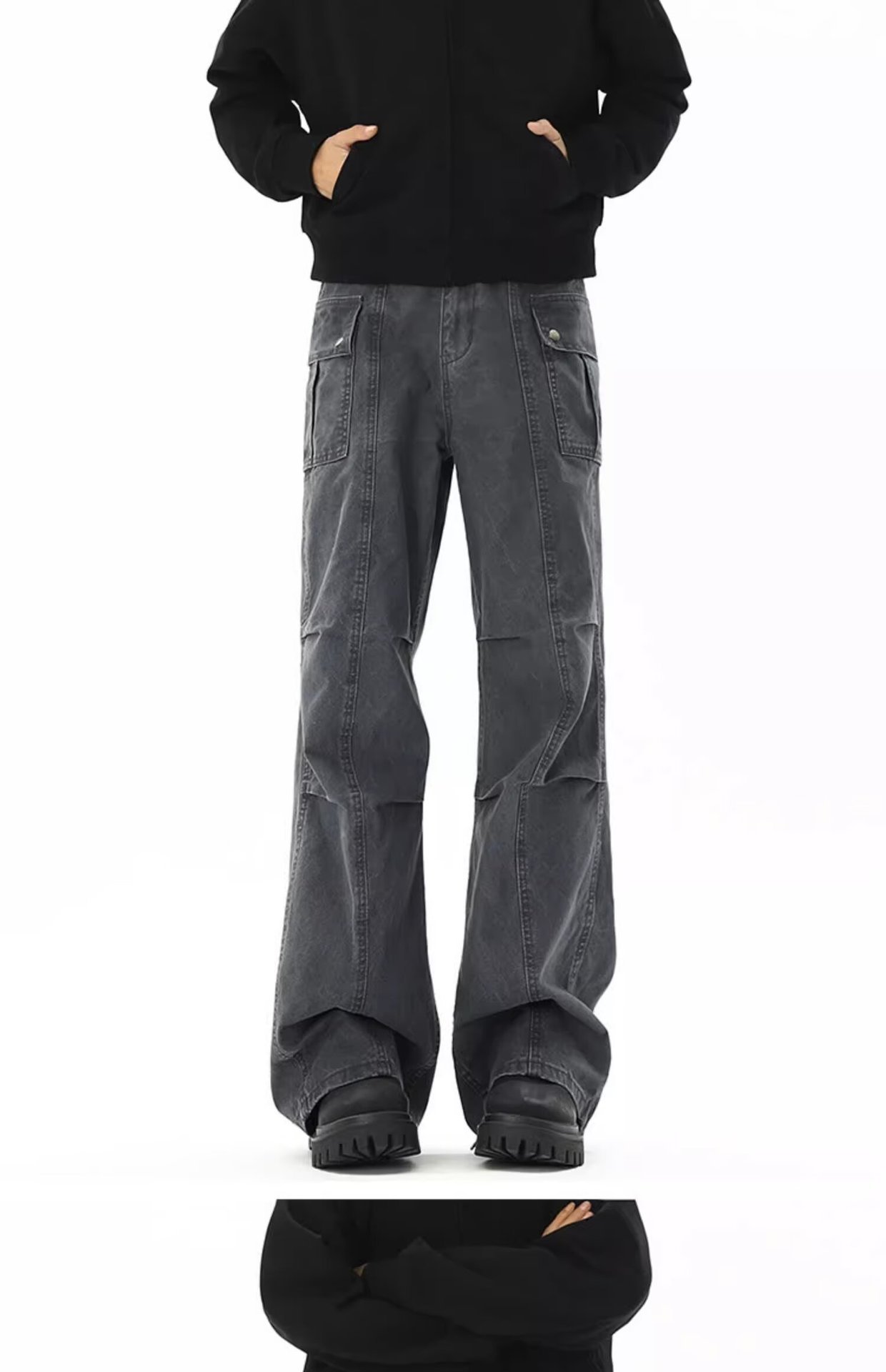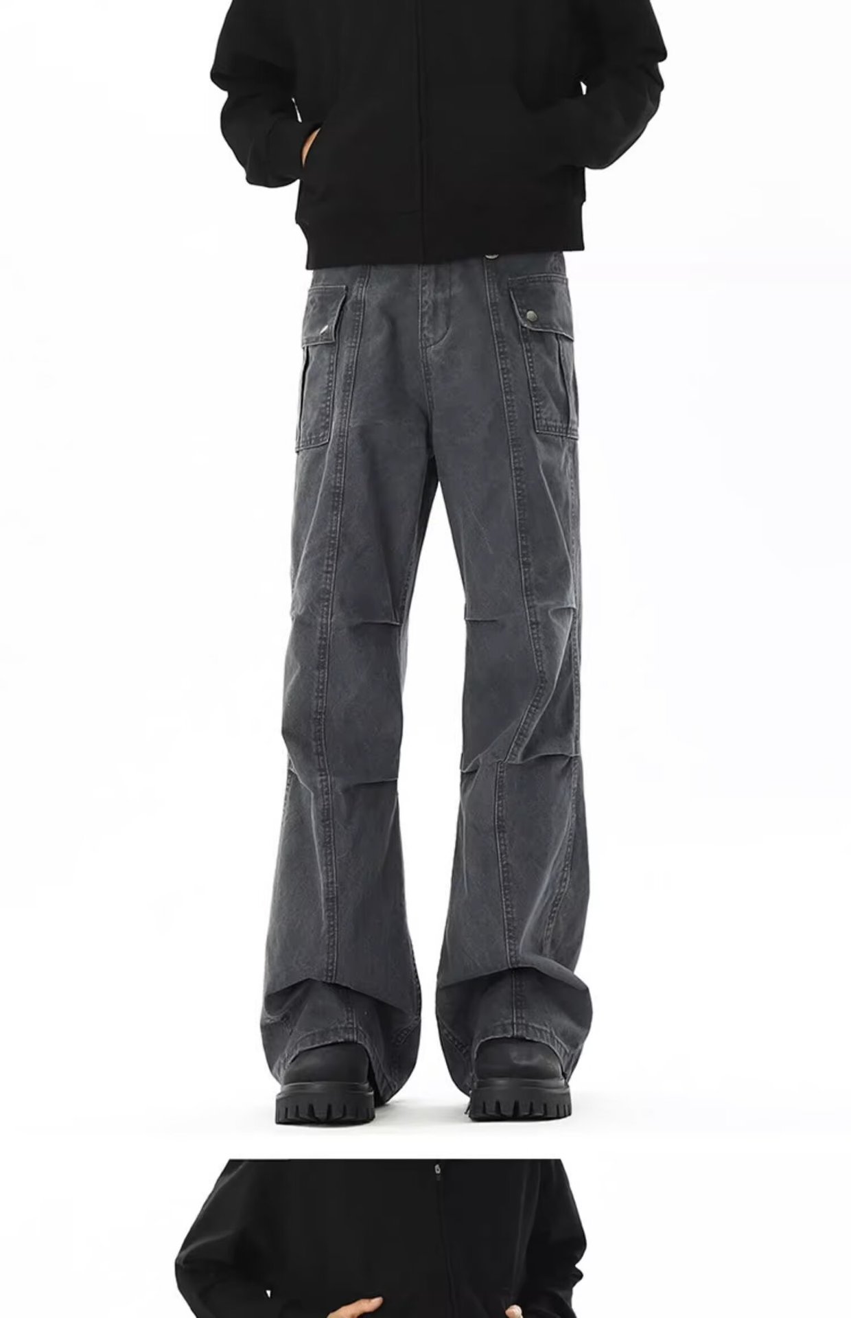 작업복 남성 2025 년 봄과 가을 새 씻은 오래된 주름 낙하산 바지 잘 생긴 느슨한 직선 캐주얼 바지