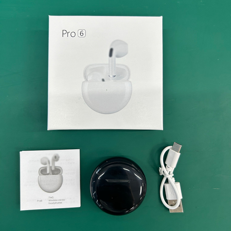 Pro6 블루투스 이어폰, 진정한 무선 인이어형, 초장시간 사용 가능한 tws 스포츠 화창북 이어폰, 국경 간 전용 공급