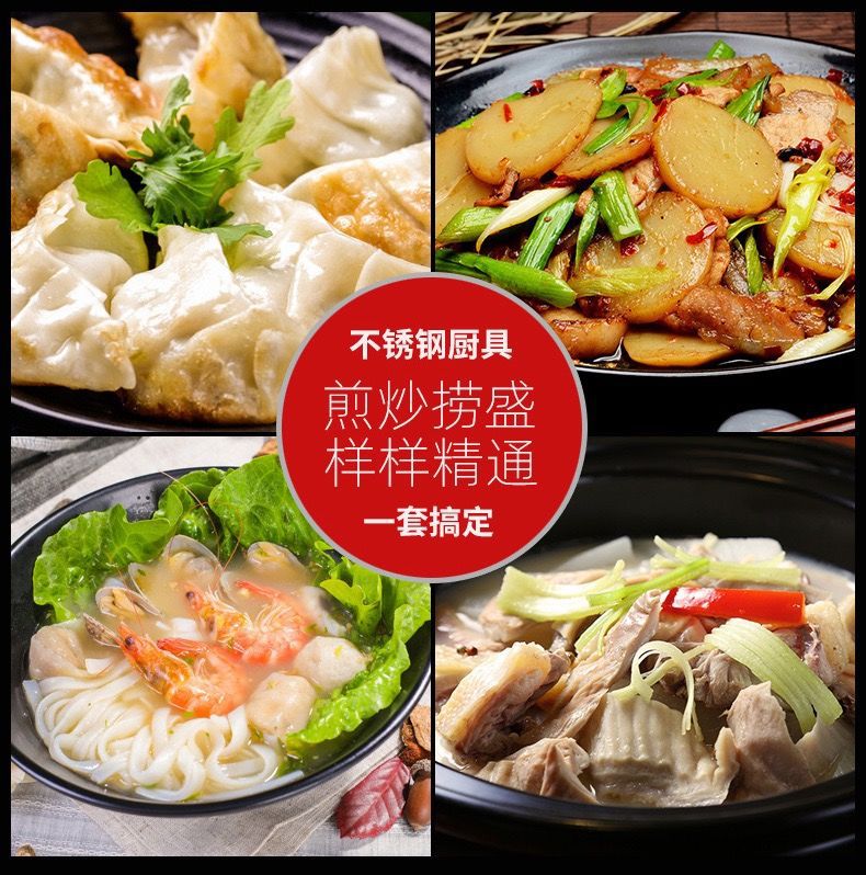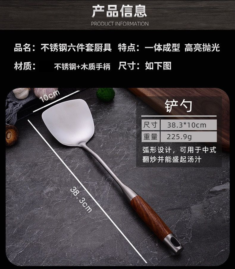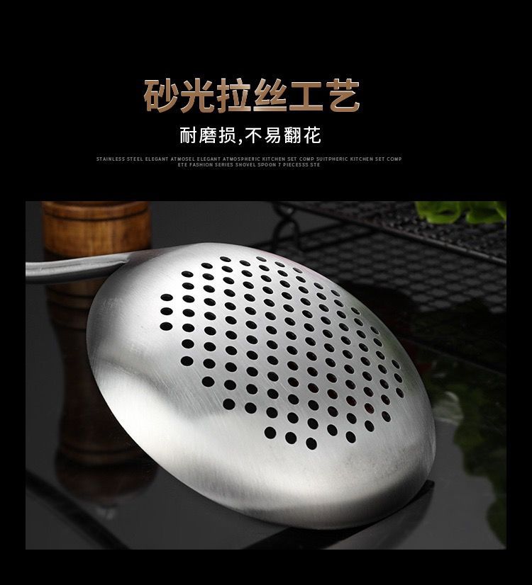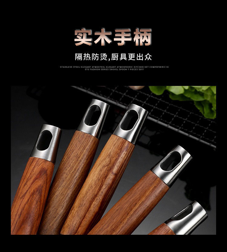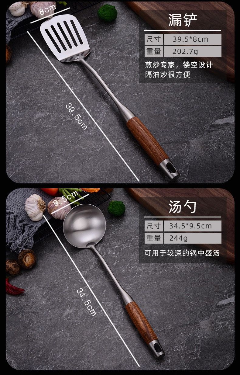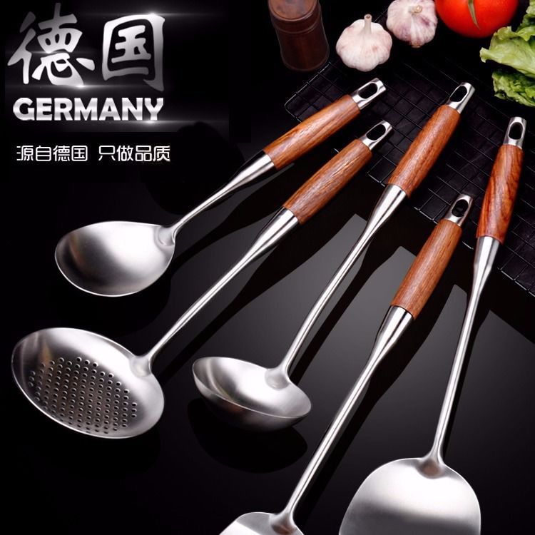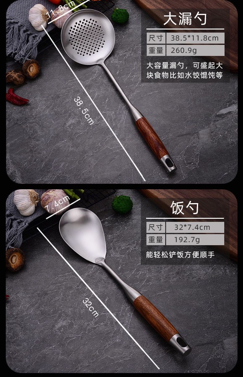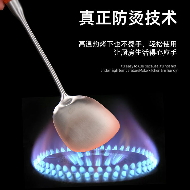 화려한 나무무늬 304 스테인리스 스틸 주걱과 수저, 가정용 주방 조리기구 세트, 화상 방지 기능스토어 가기