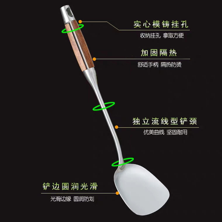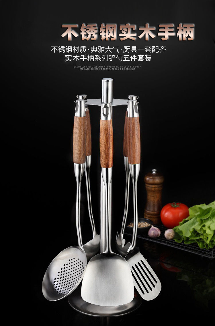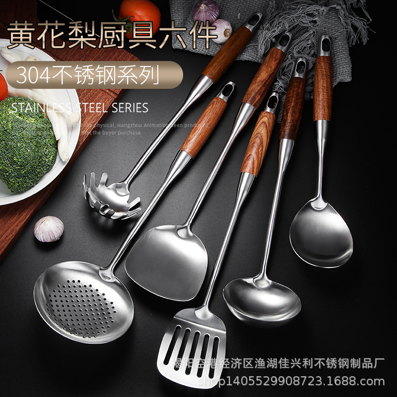 화려한 나무무늬 304 스테인리스 스틸 주걱과 수저, 가정용 주방 조리기구 세트, 화상 방지 기능
