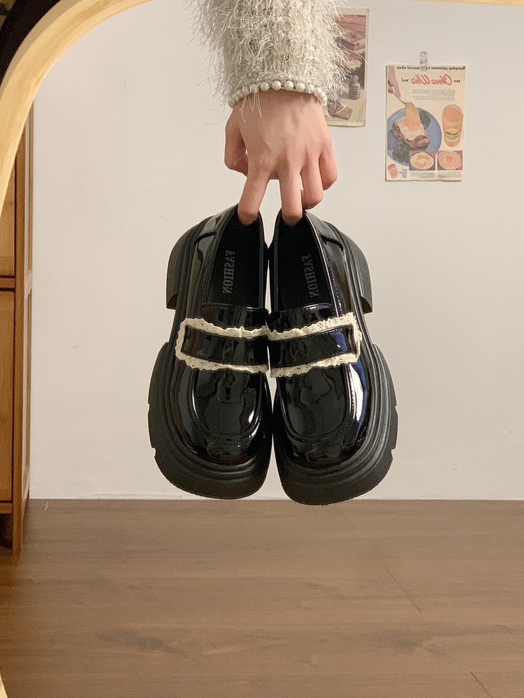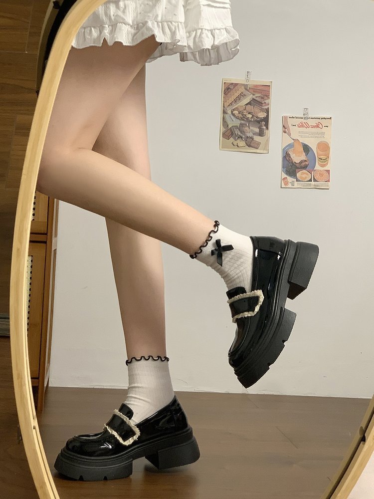 두꺼운 밑창 JK Mary Jane 신발 여성 2025 년 새 봄 올 매치 레트로 블랙 라운드 발가락 영국 스타일 학생 작은 가죽 신발
