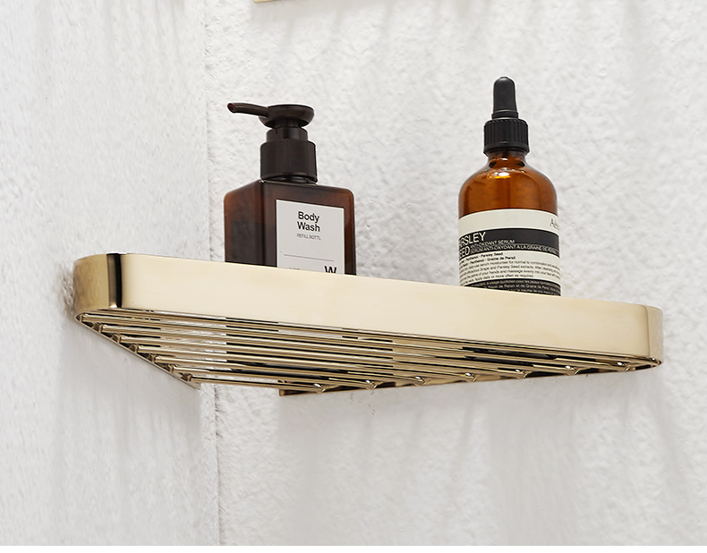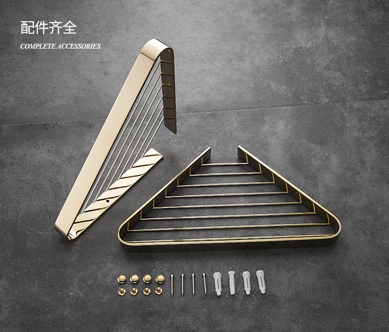 욕실 코너 랙 황동 욕실 보관 랙 샤워 룸 욕실 벽걸이 그물 바구니 황금 삼각형 바구니