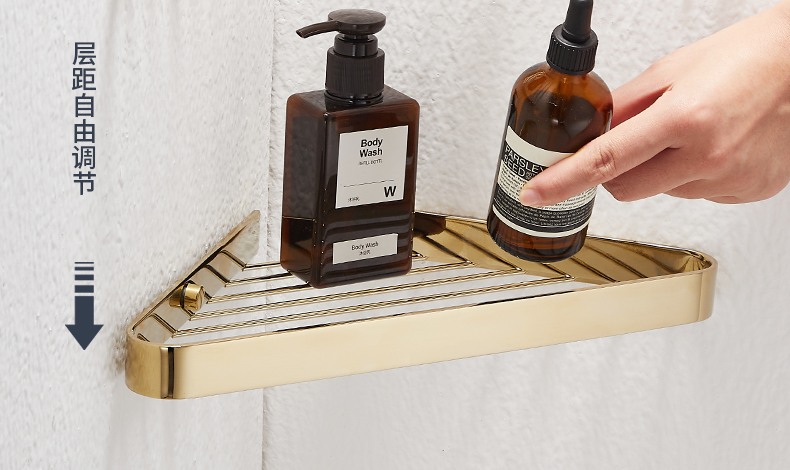 욕실 코너 랙 황동 욕실 보관 랙 샤워 룸 욕실 벽걸이 그물 바구니 황금 삼각형 바구니스토어 가기