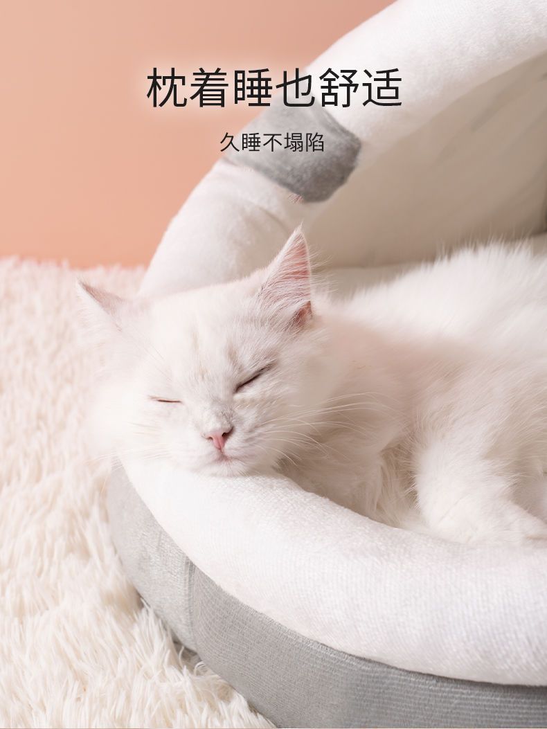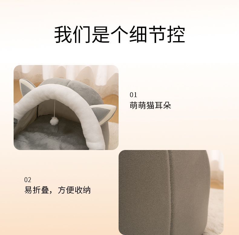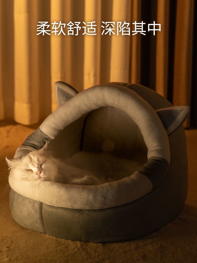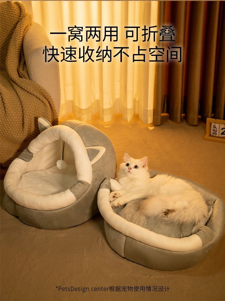 고양이 개집, 겨울 따뜻한 반밀폐형 고양이 집, 고양이 침대, 고양이 매트, 소형견 개 개집, 사계절 모두 사용 가능한 보편적인 애완동물스토어 가기
