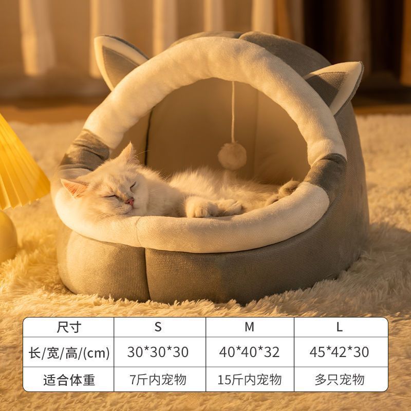 고양이 개집, 겨울 따뜻한 반밀폐형 고양이 집, 고양이 침대, 고양이 매트, 소형견 개 개집, 사계절 모두 사용 가능한 보편적인 애완동물