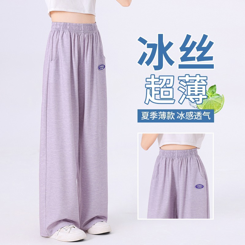 소녀 바지 2025 새로운 어린이 넓은 다리 바지 대형 어린이 스포츠 캐주얼 바지 소녀 여름 얇은 아이스 실크 바지
