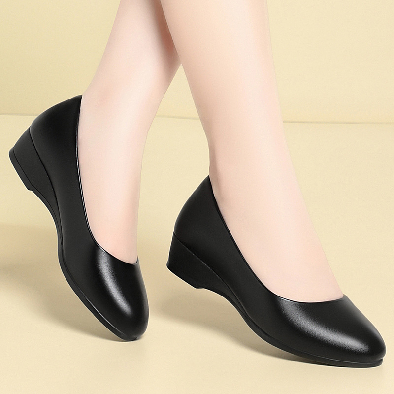 여름 스튜어디스 작업 신발 블랙 여성의 부드러운 바닥 편안한 평면 부드러운 가죽 전문 작업 신발