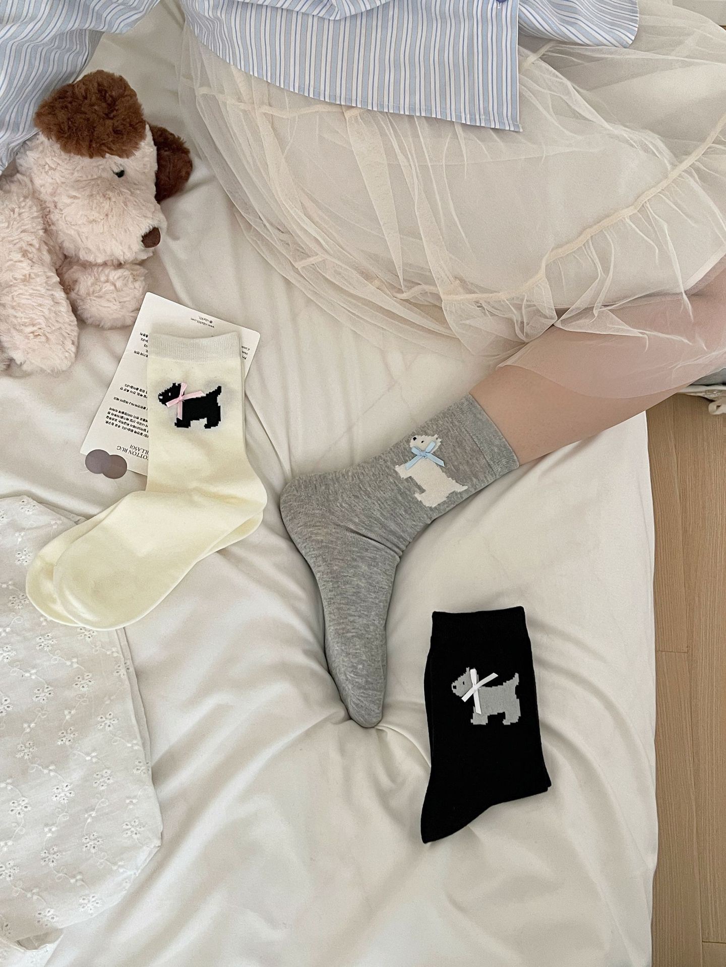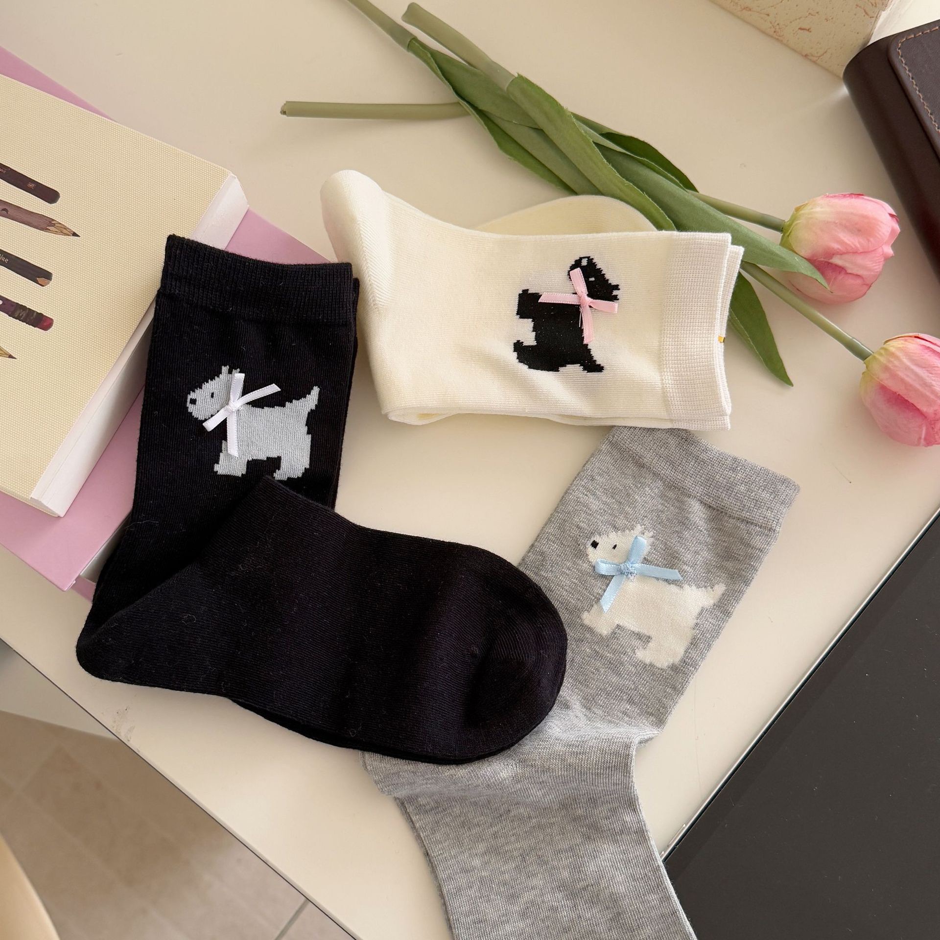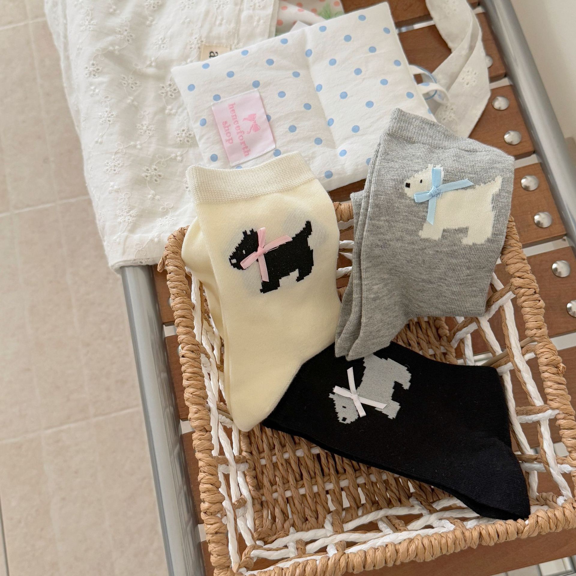 양말 여성의 봄과 여름 얇은 한국식 귀여운 활 웨스트 하이랜드 강아지 양말 뼈없는 면 스택 양말스토어 가기