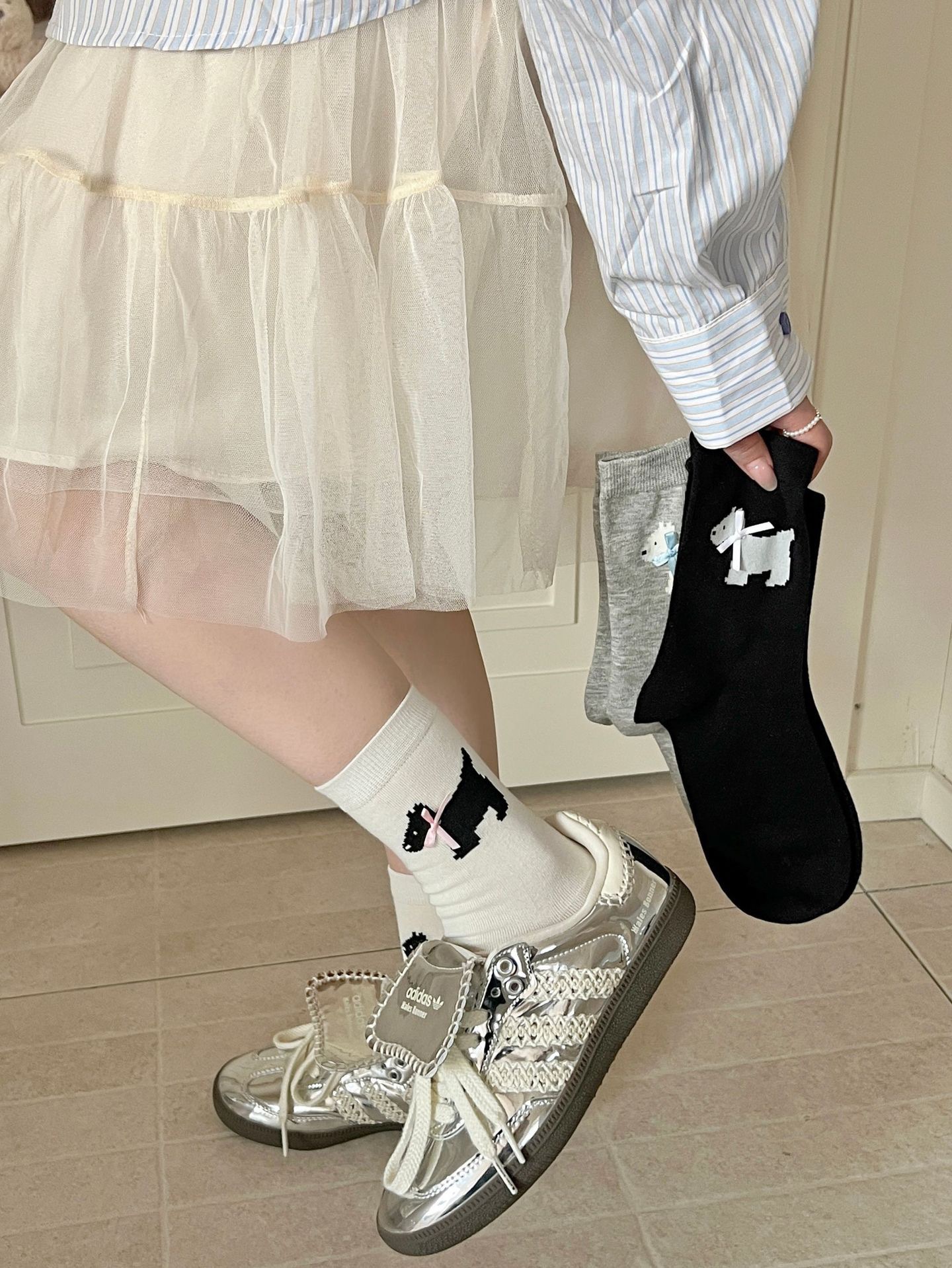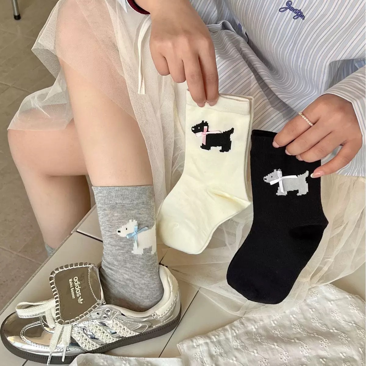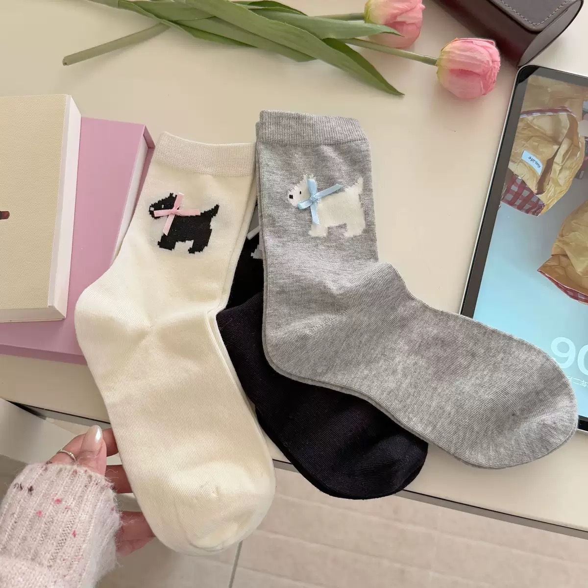 양말 여성의 봄과 여름 얇은 한국식 귀여운 활 웨스트 하이랜드 강아지 양말 뼈없는 면 스택 양말스토어 가기