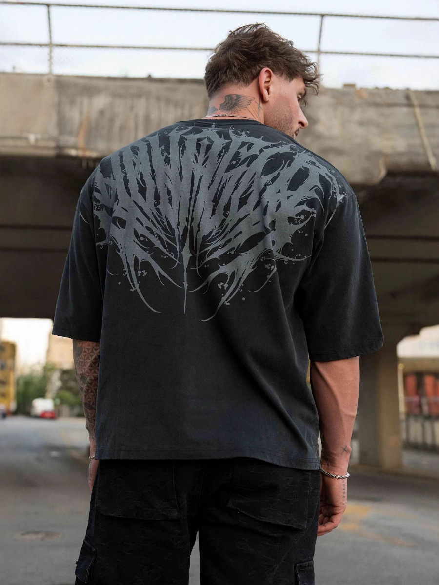 YOUNGLA 아메리칸 뉴 남성 티셔츠 여름 남성 캐주얼 루즈 트렌디 프린트 코튼 반팔 스포츠 티셔츠