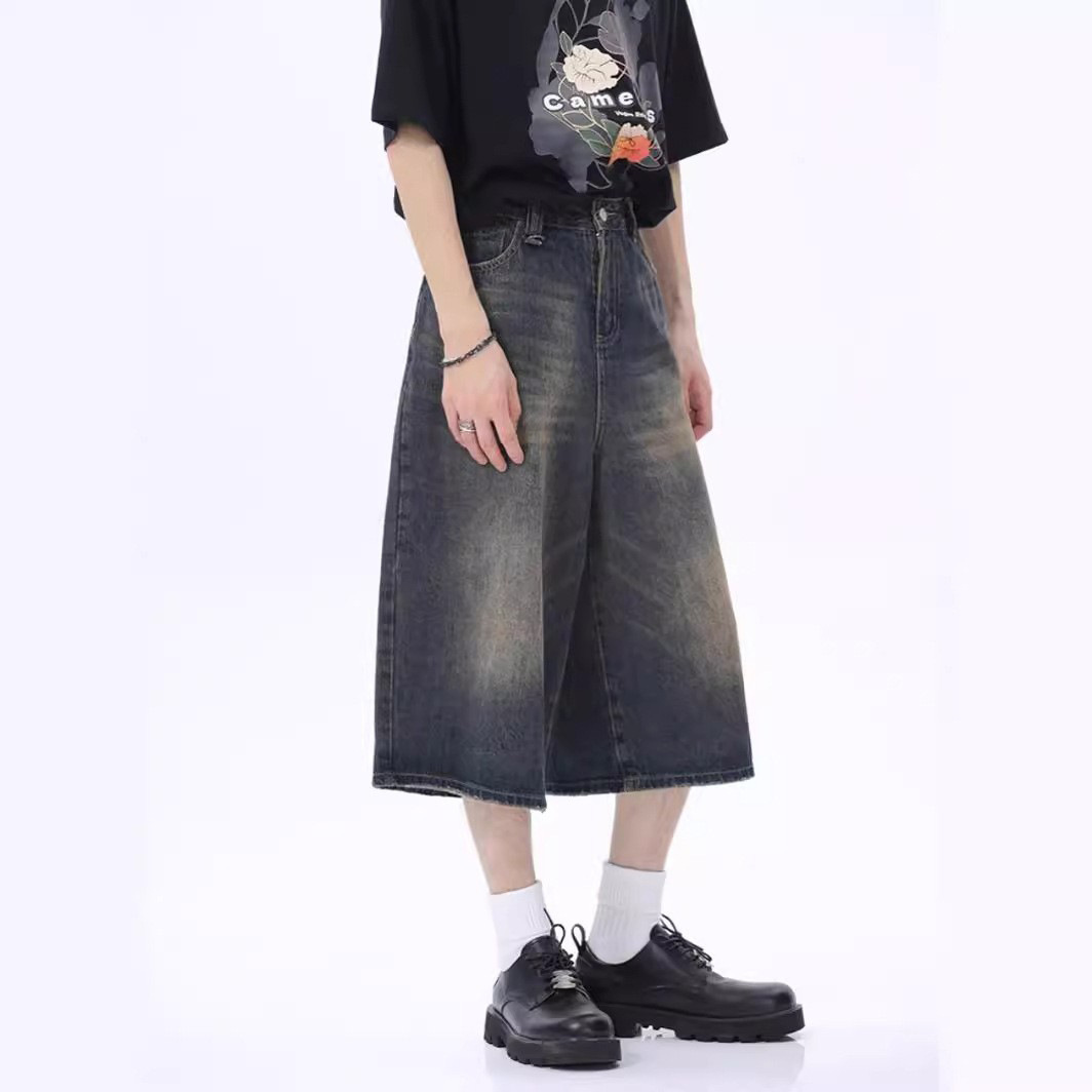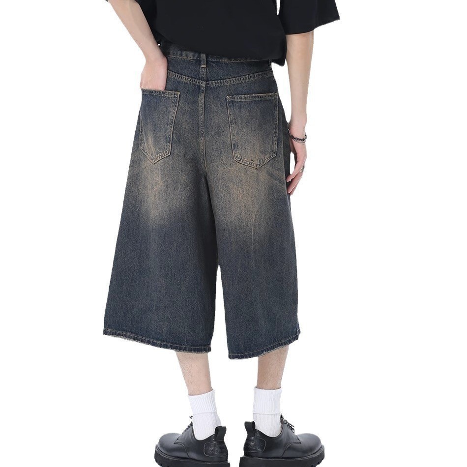 남자 데님 반바지 2024 새로운 국경 하이 퀄리티 남성 크롭 팬츠 트렌디 한 데님 반바지스토어 가기