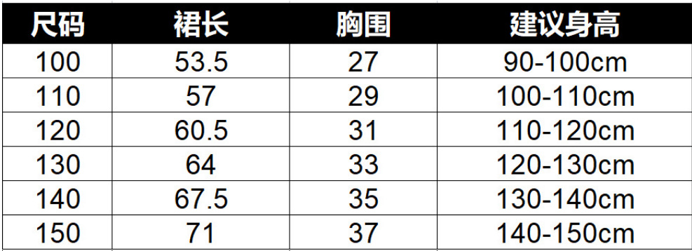 6个码数:100 110  120  130 140  150