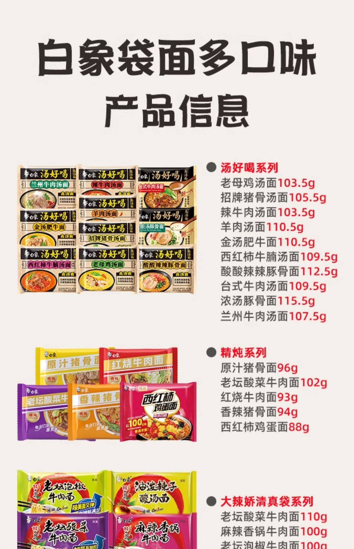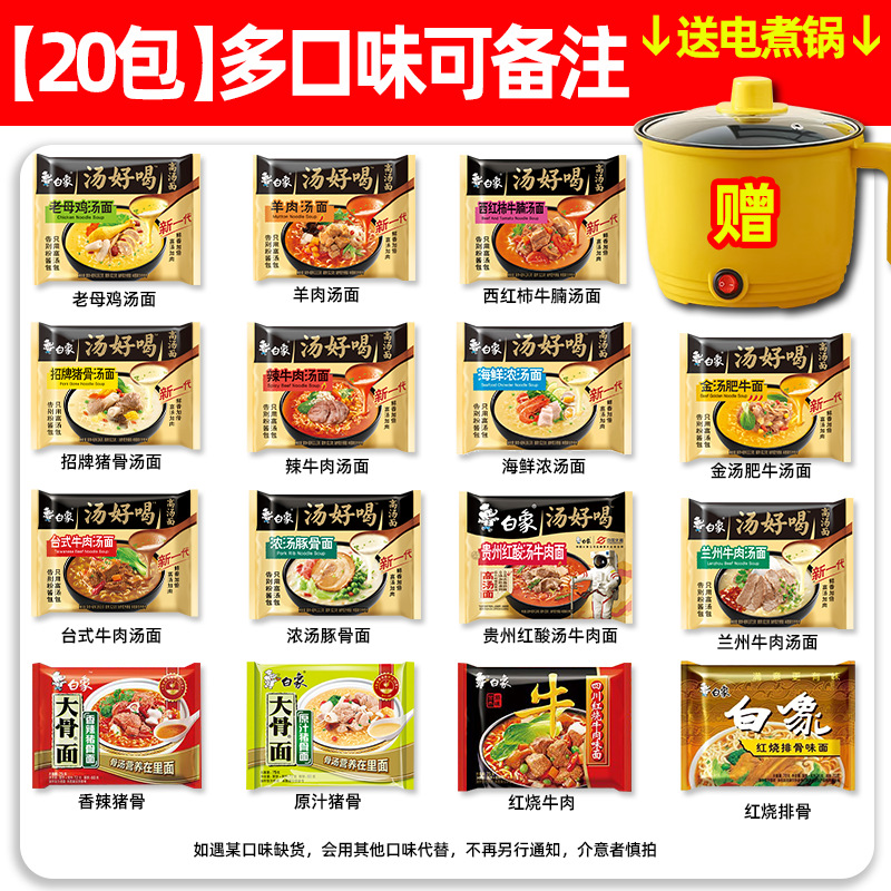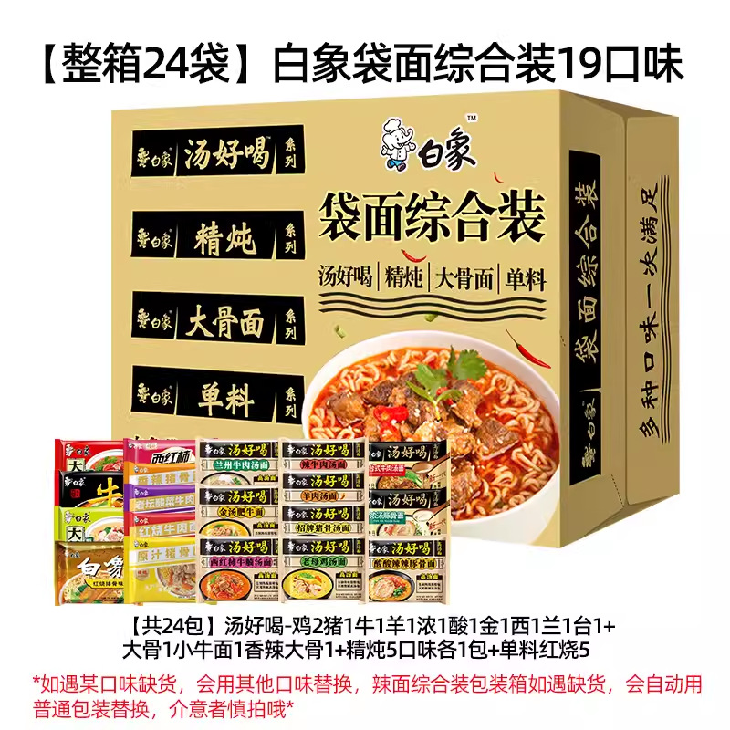 흰 코끼리 인스턴트 국수 흰 코끼리 늙은 국수 수프 맛있는 즉석 가방 시리즈 전기 요리 냄비의 공식 플래그십 스토어
