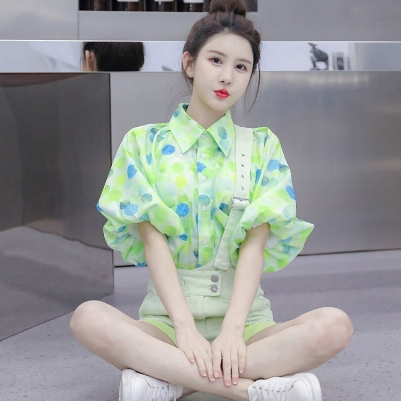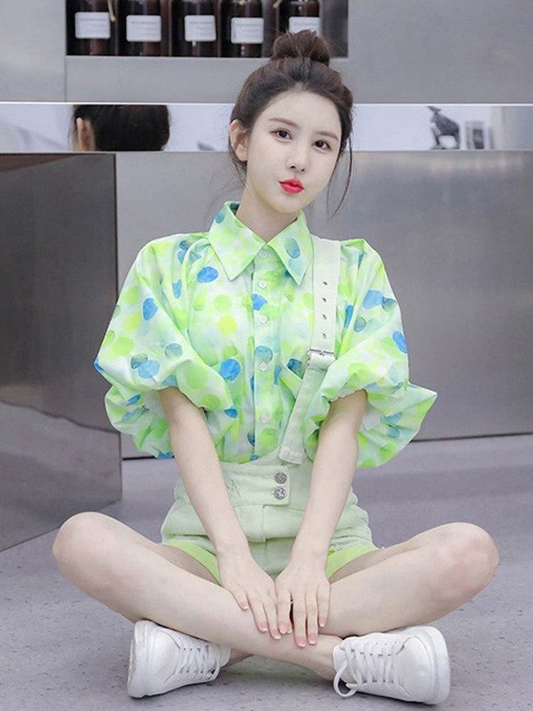 이른 봄 한국 민트 맘보 스타일 셔츠 하이 엔드 센스 인터넷 연예인 프라이드 스트리트 활기찬 시대 감소 샤넬 스타일 그린 셔츠 여름스토어 가기