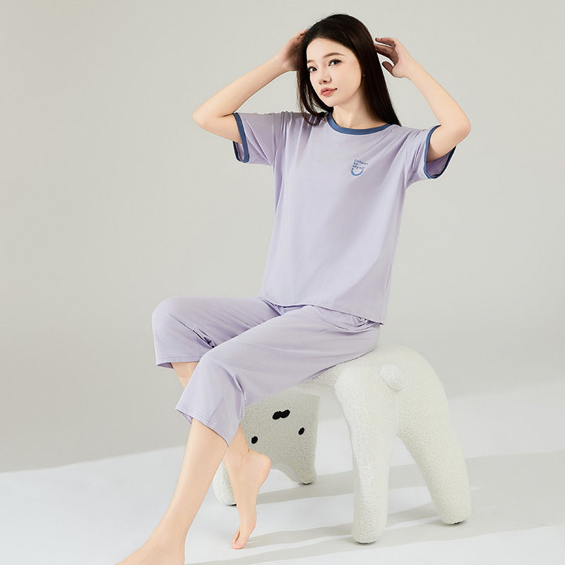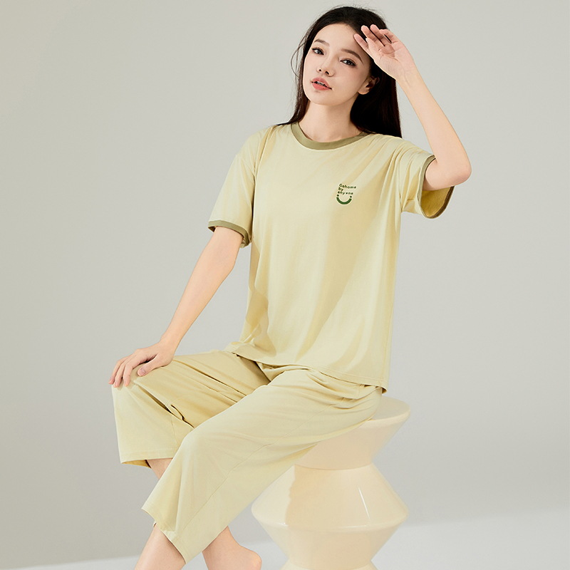 새 여름 퓨어 코튼 파자마 여성 세트 반팔 반바지, 가슴 패드 걸스 투피스 홈웨어 의상스토어 가기