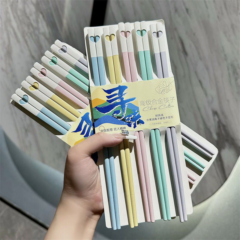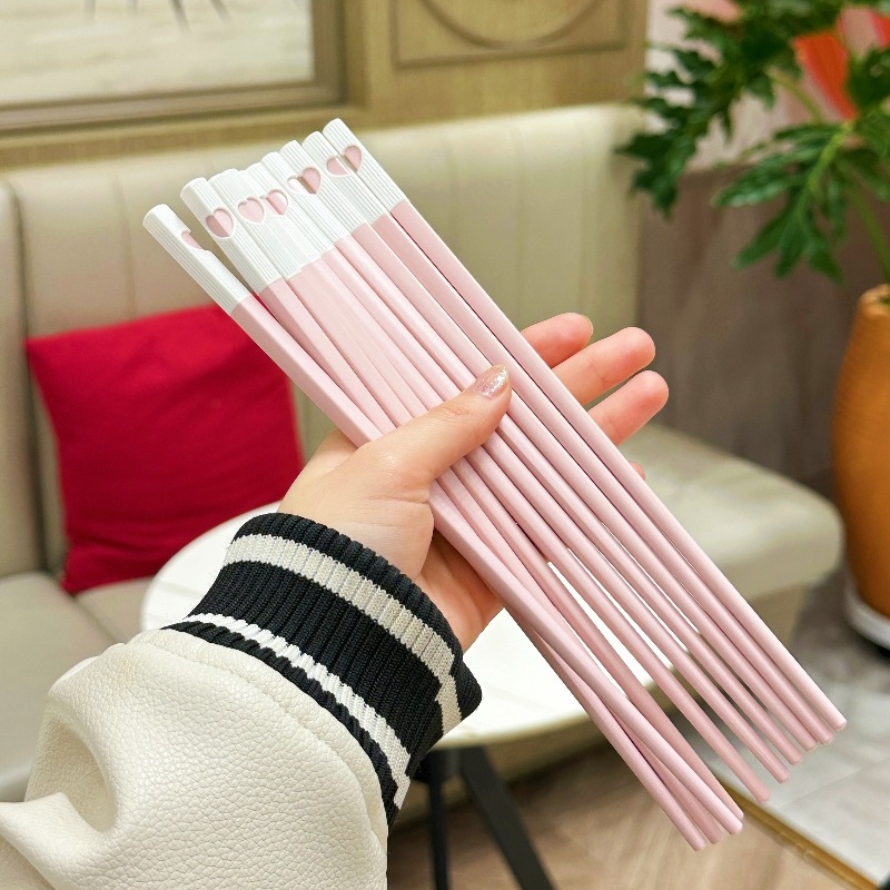 귀여운 핑크 사랑 항균 합금 젓가락 미끄럼 방지 식기 세척기 청소 가정용 식기 세척기