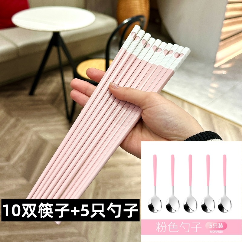 • 핑크색 연인 젓가락 10쌍 + 핑크색 스푼 5개 [무도장, 무왁스]