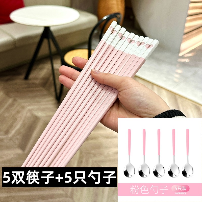 • 핑크색 연인 젓가락 5쌍 + 핑크색 스푼 5개 [무도장, 무왁스]