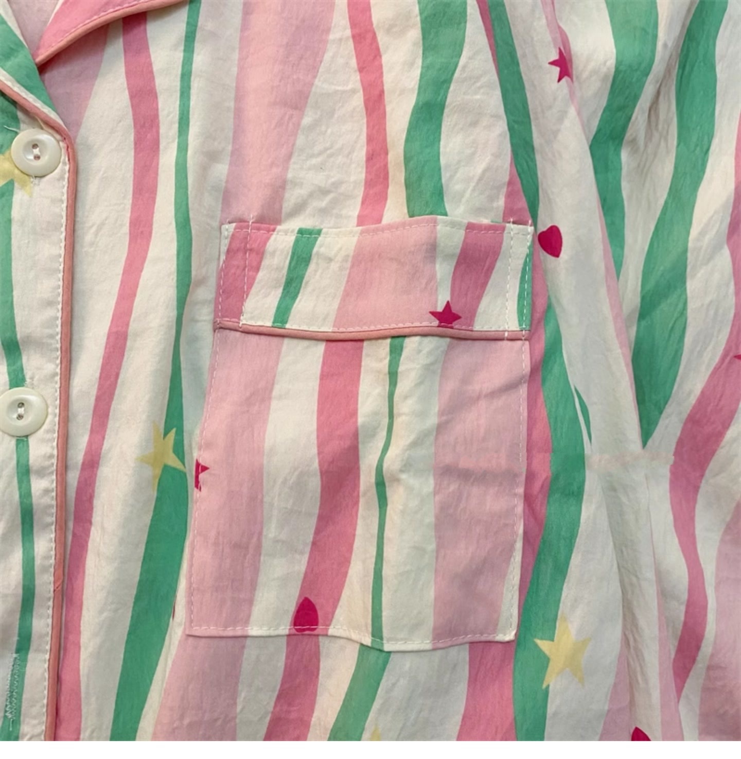 [도파민 줄무늬] 잠옷 여성 봄과 가을 새로운 긴 소매 바지 세트 달콤한 카디건 홈 의류 yzl스토어 가기