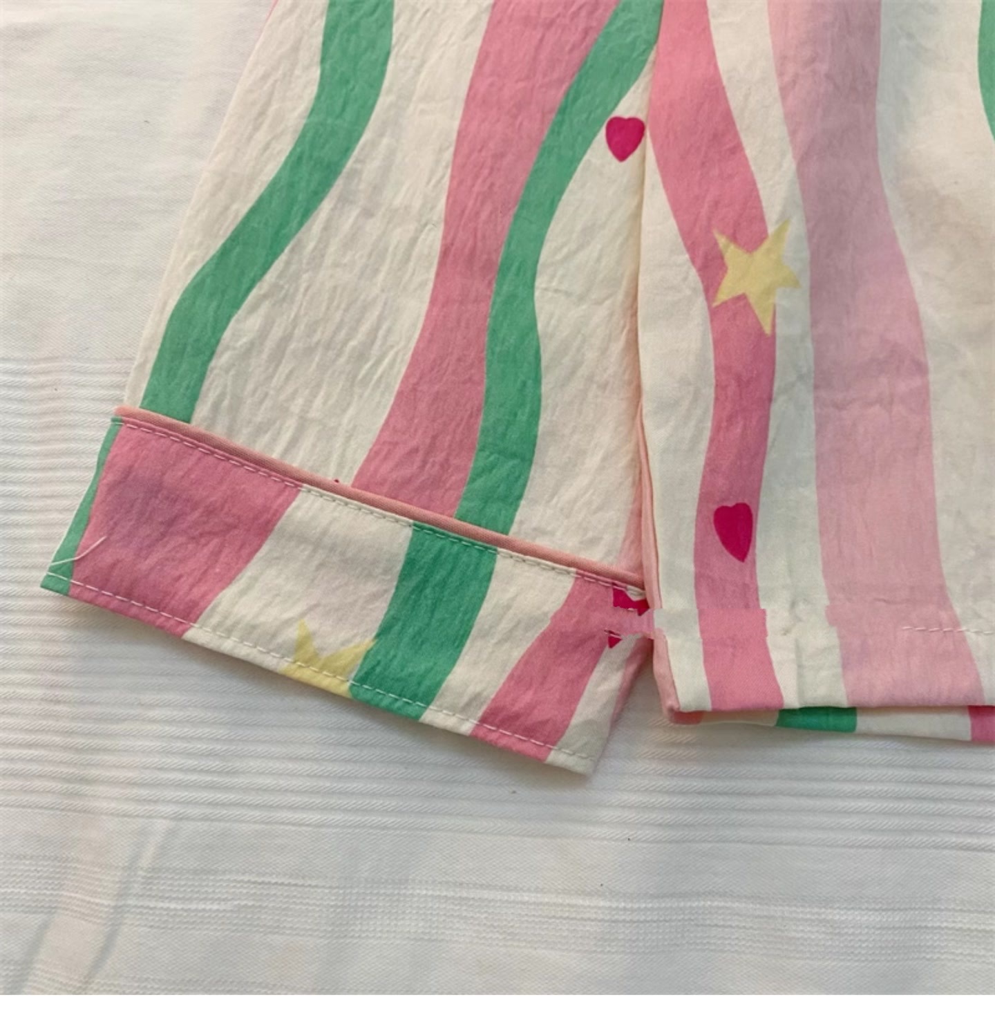 [도파민 줄무늬] 잠옷 여성 봄과 가을 새로운 긴 소매 바지 세트 달콤한 카디건 홈 의류 yzl