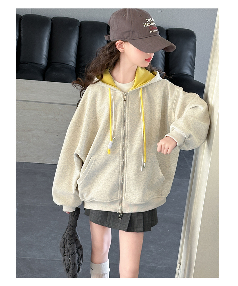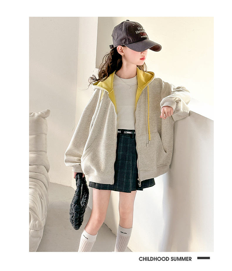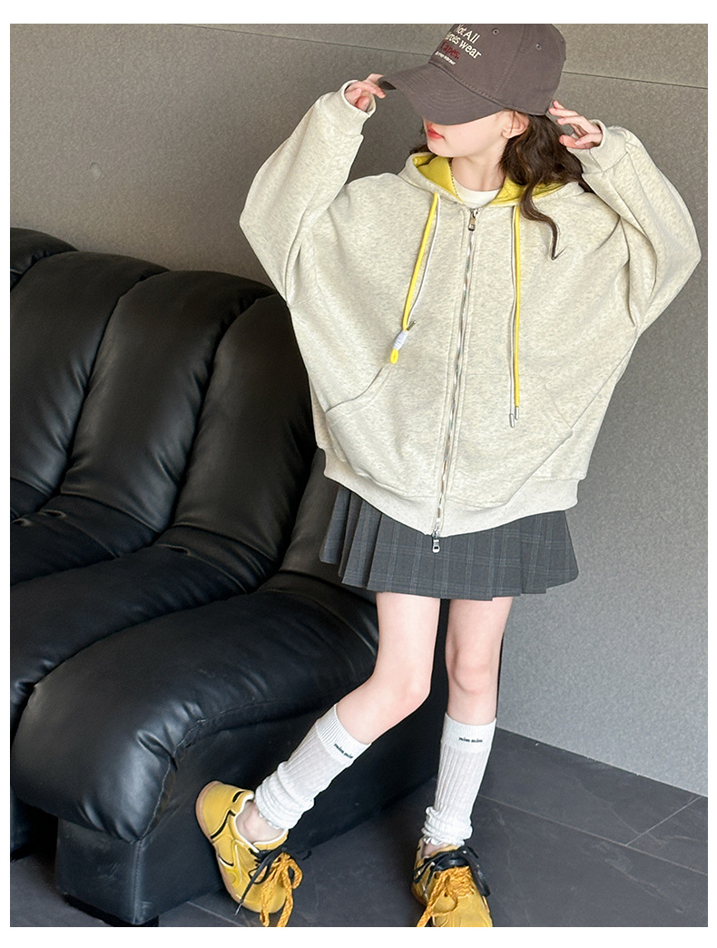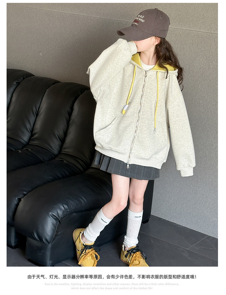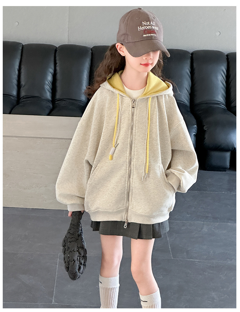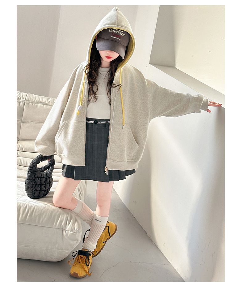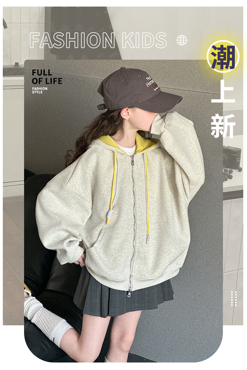 소녀 카디건 스웨터 코트 봄과 가을 2025 새로운 어린이 서양식 봄 옷 큰 어린이 느슨한 후드 탑스토어 가기