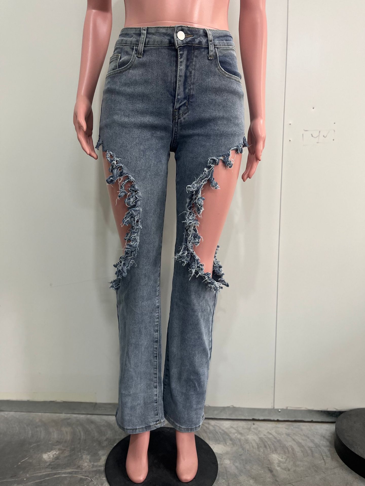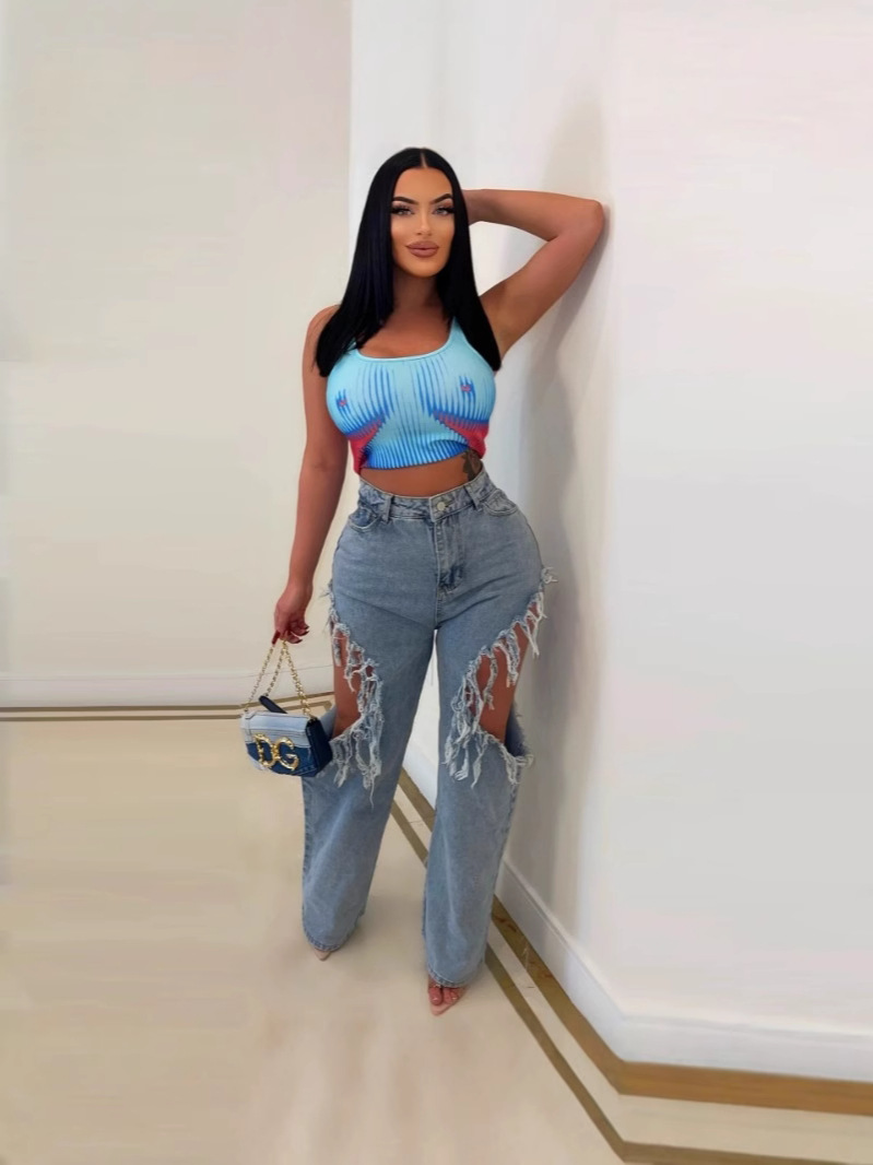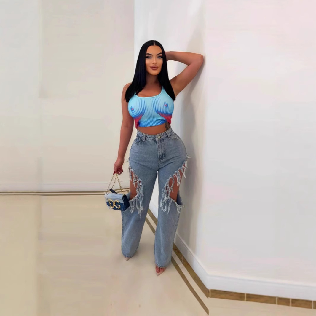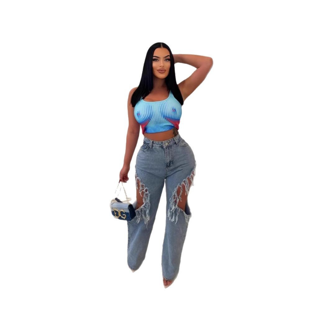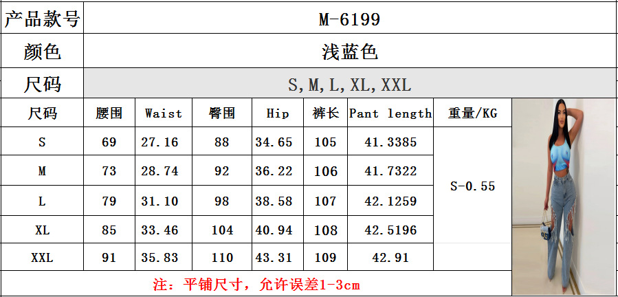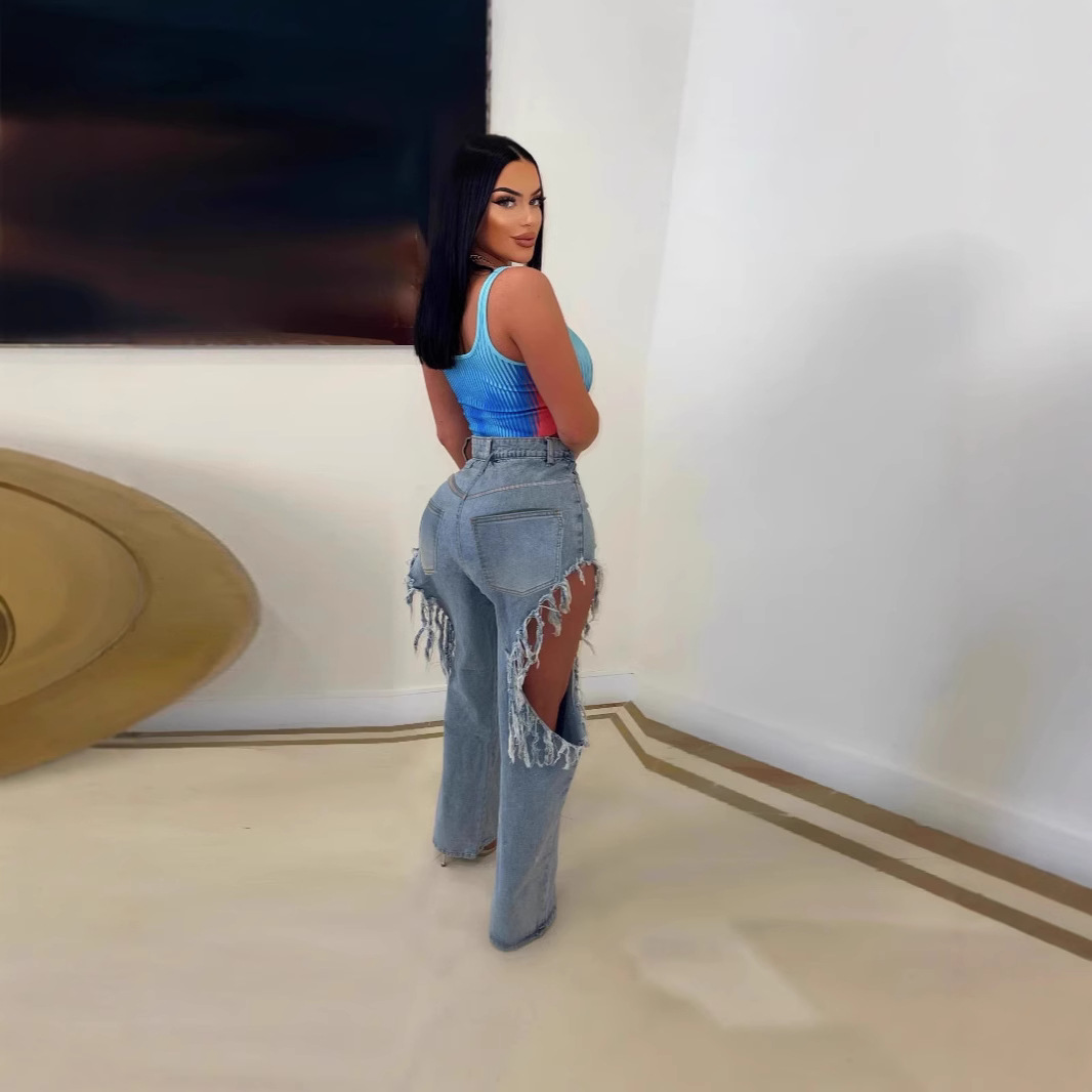 M-6199 국경 간 공급 유럽과 미국 봄과 여름 새로운 여성 인 패션 섹시한 구멍 세척 물 청바지