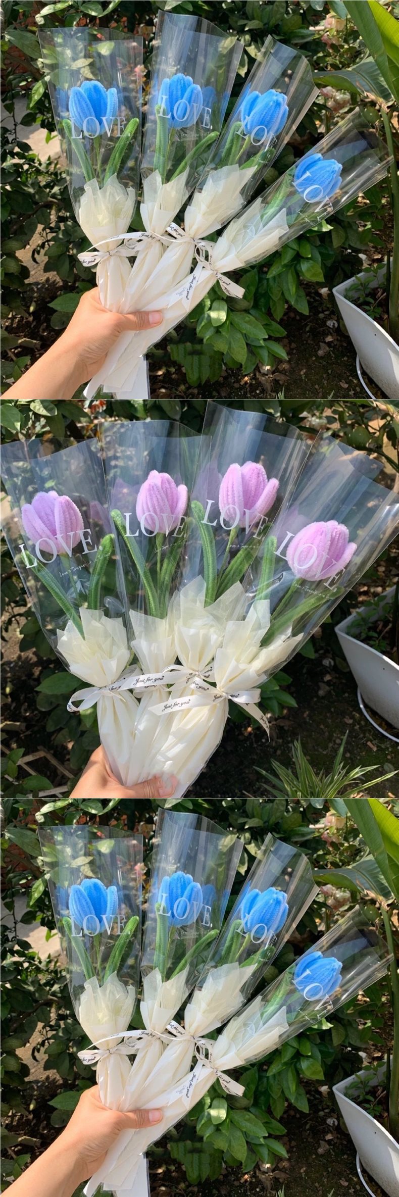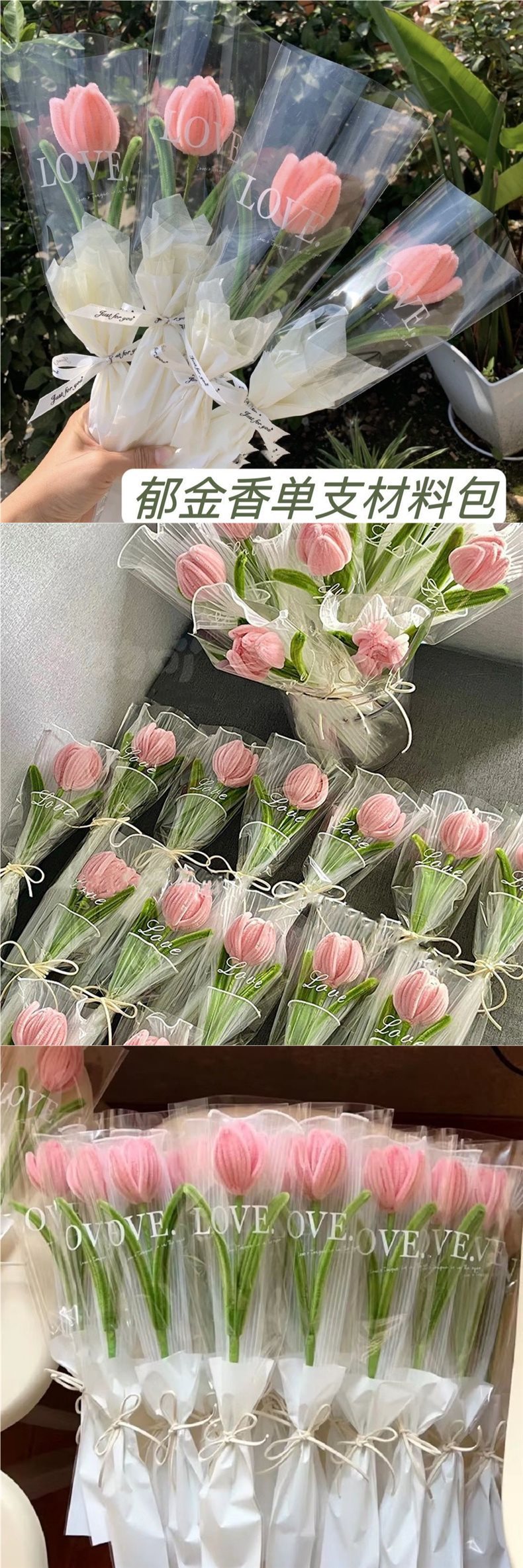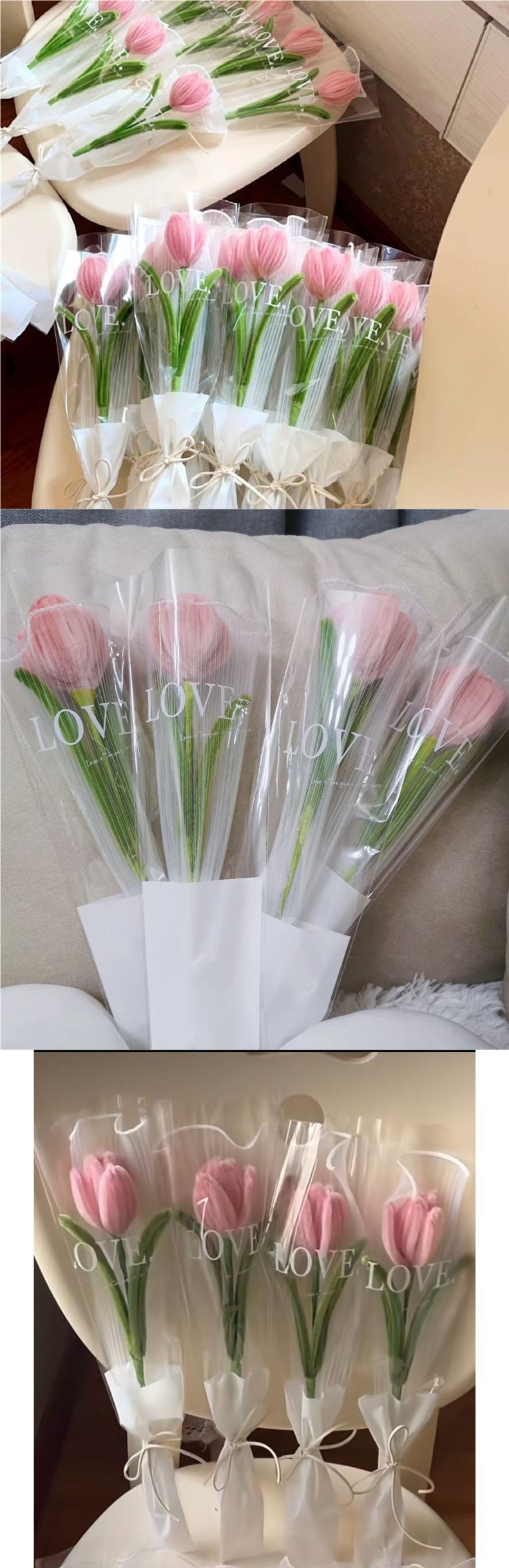 새로운 트위스트 바 꽃다발 튤립 꽃 소재 가방 손으로 짠 어머니의 날 Tanabata 교사의 날