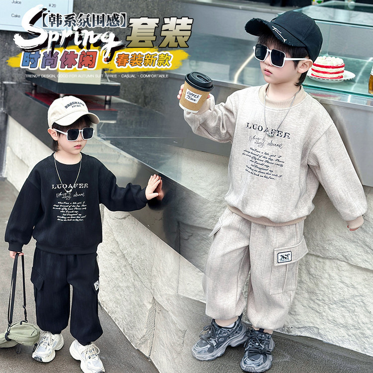 7718 소년 봄과 가을 잘 생긴 운동복 세트 2025 새로운 어린이 봄 운동복 아기 옷스토어 가기