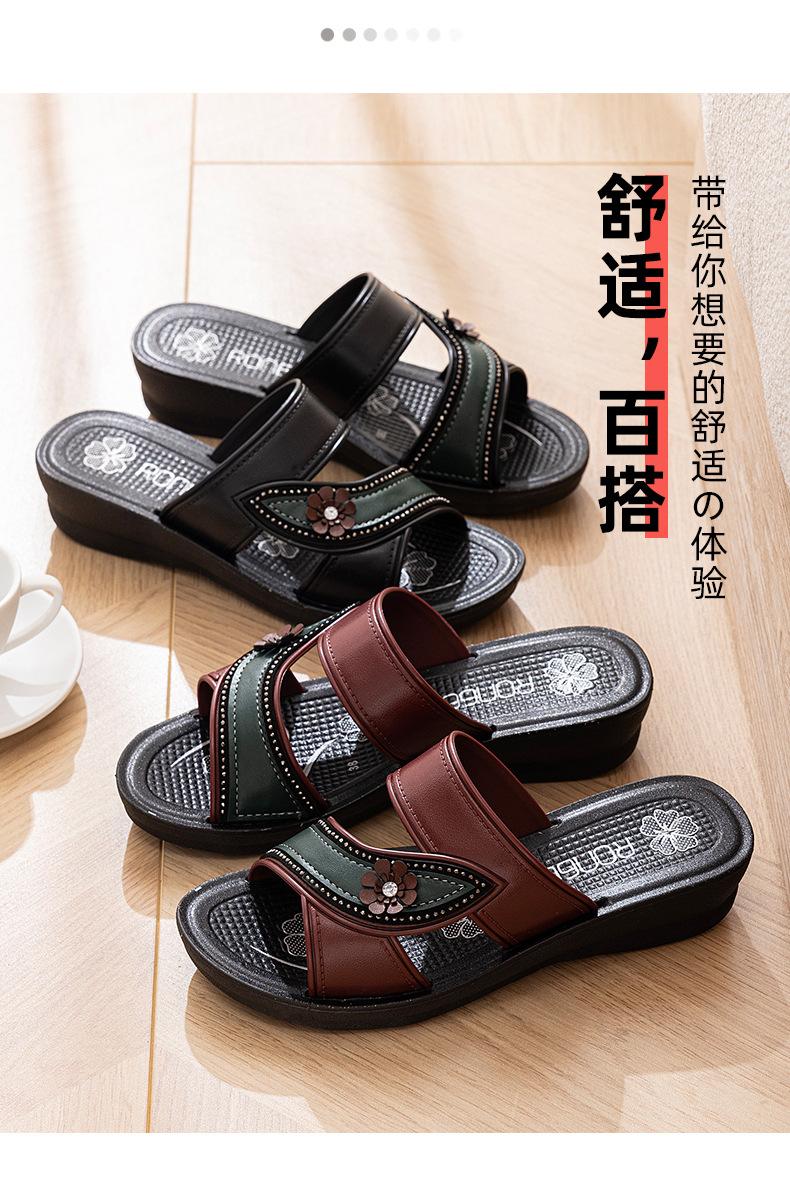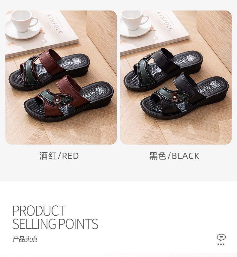 새로운 스타일의 마더 샌들 및 슬리퍼 여성용 두꺼운 바닥 부드러운 밑바닥 미끄럼 방지 하이 힐 미드 힐 캐주얼 중년 및 노인 슬리퍼스토어 가기