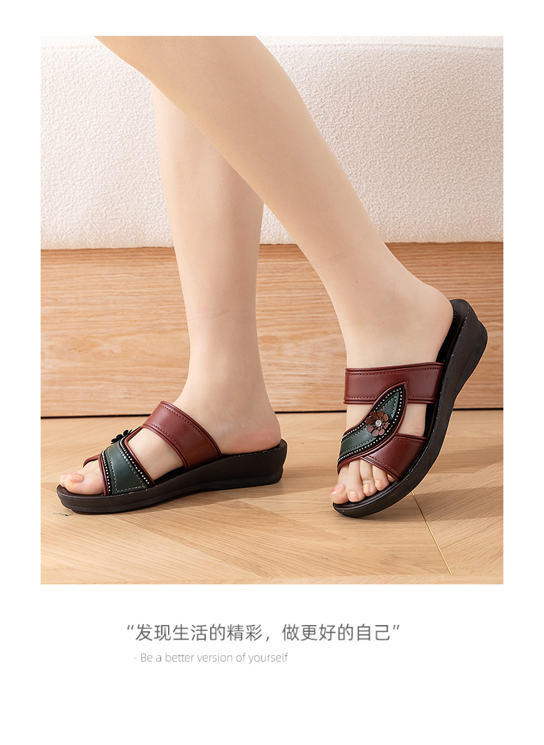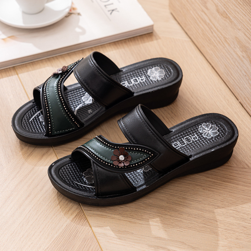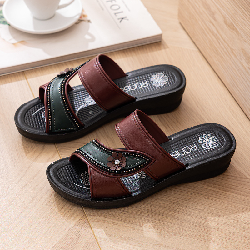 새로운 스타일의 마더 샌들 및 슬리퍼 여성용 두꺼운 바닥 부드러운 밑바닥 미끄럼 방지 하이 힐 미드 힐 캐주얼 중년 및 노인 슬리퍼