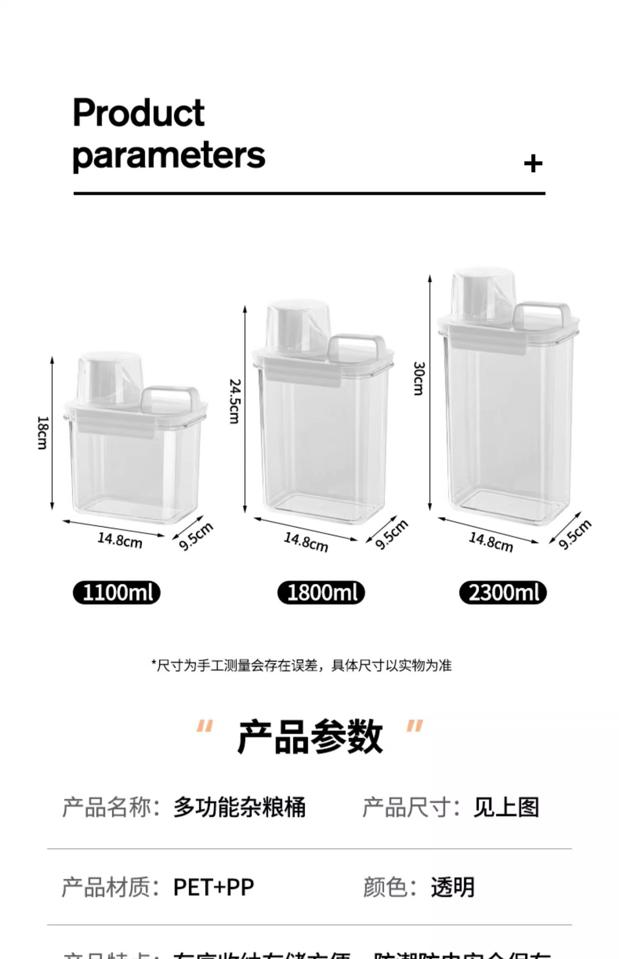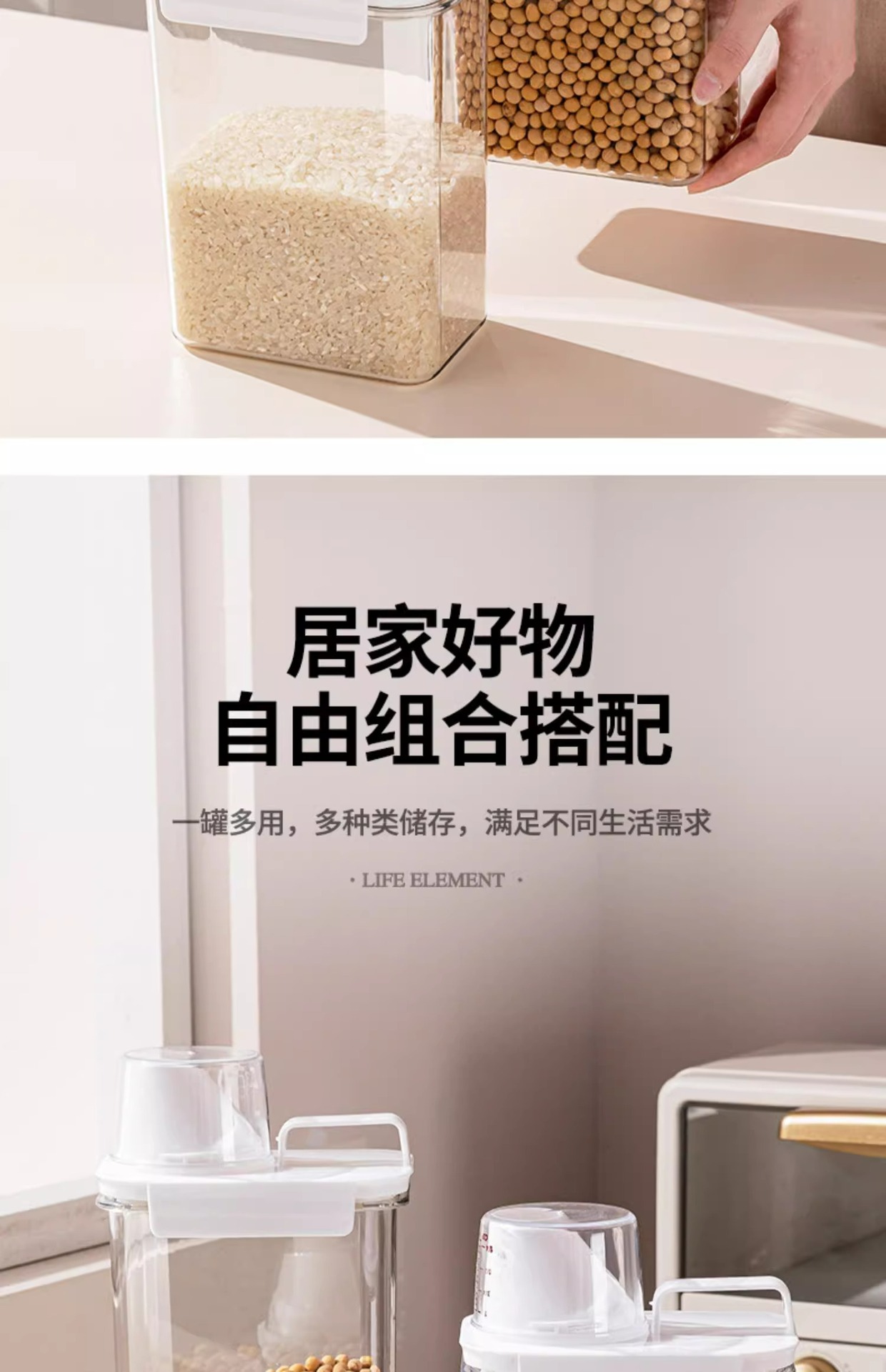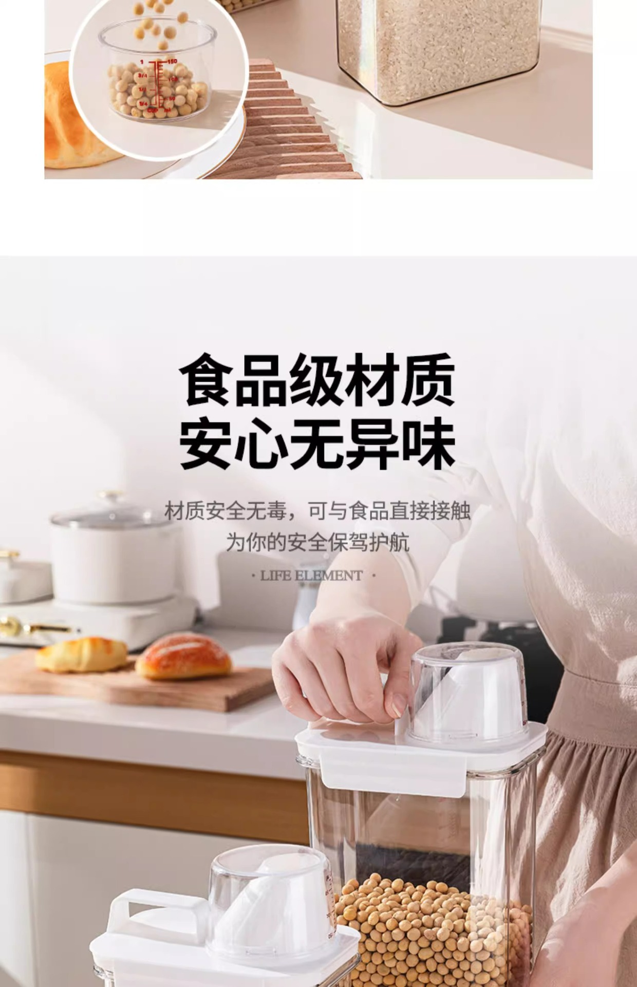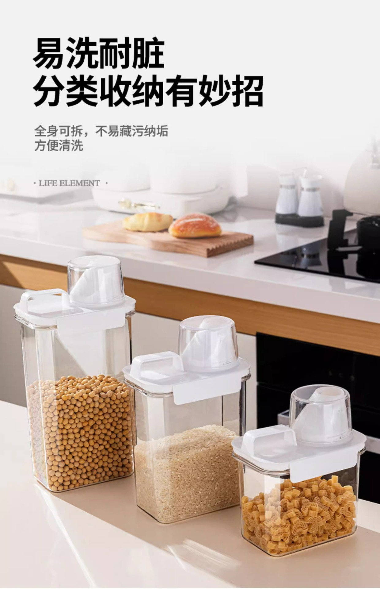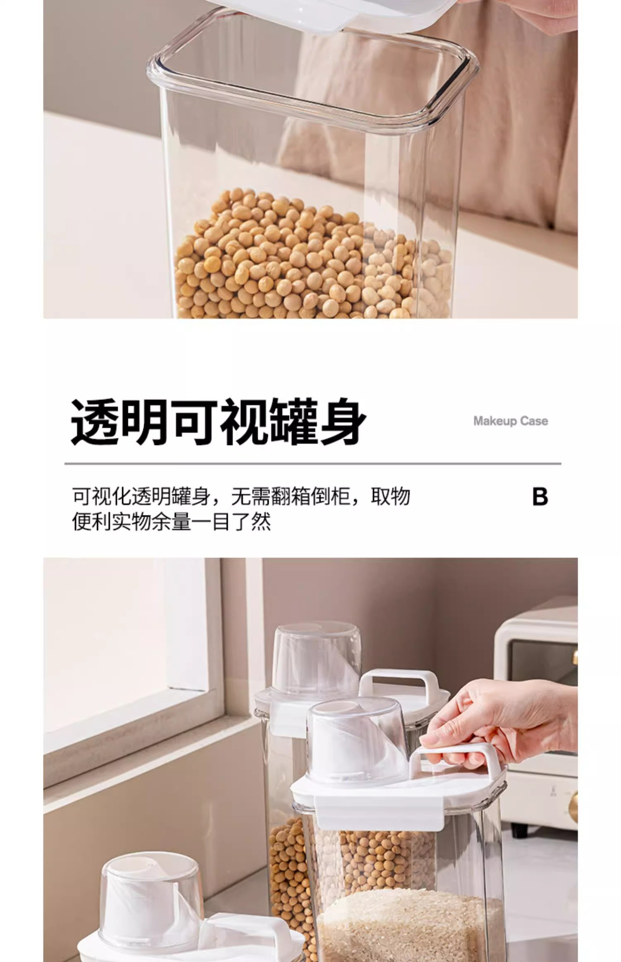 봉인 된 항아리 곡물 주방 저장 상자 식품 등급 투명한 플라스틱 항아리 쌀 버킷 저장 용기 콩