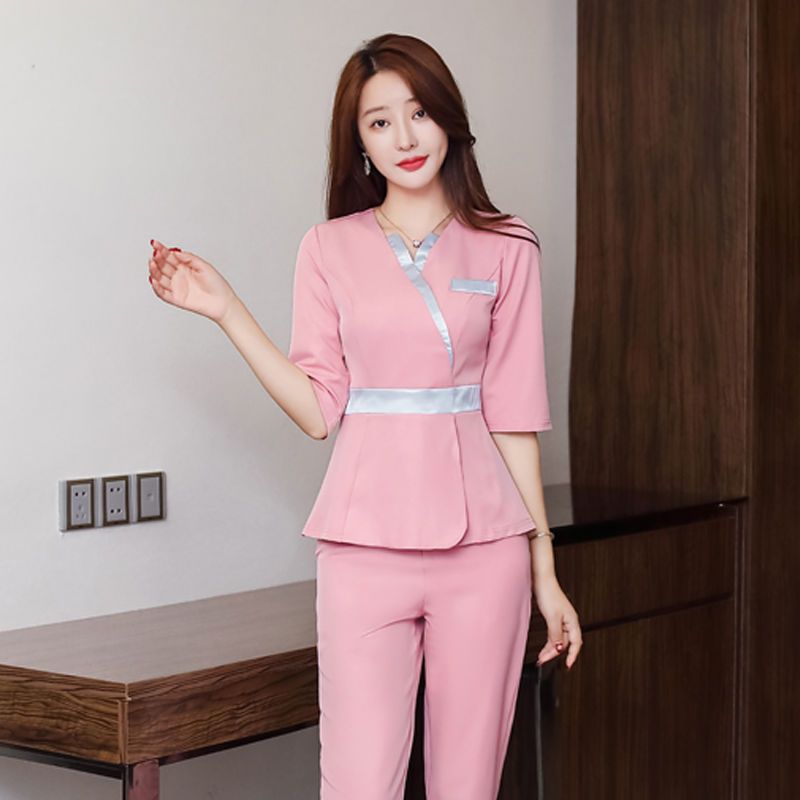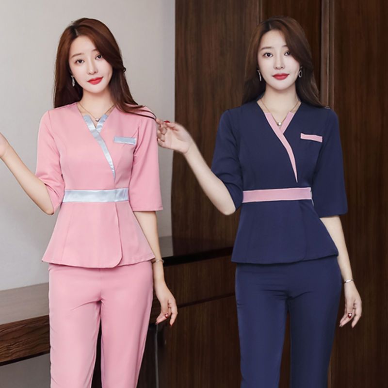 새로운 미용실 작업 옷 여성 귀 포커 작업 옷 발 치료 발 목욕 건강 홀 기술자 옷 마사지 작업 옷스토어 가기