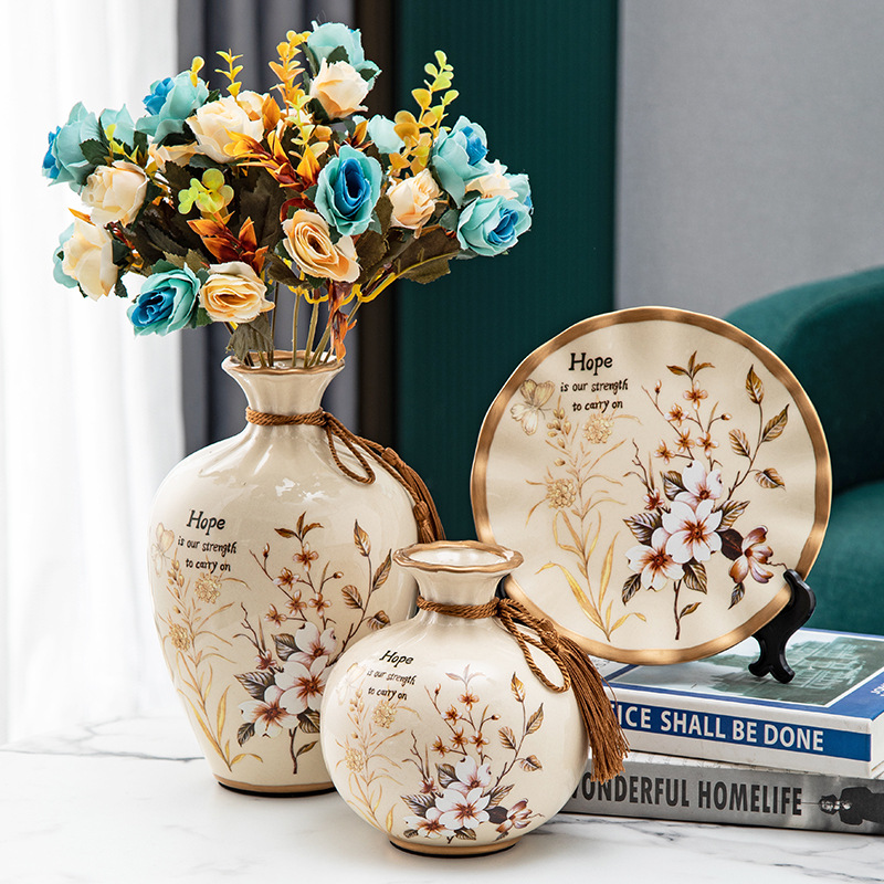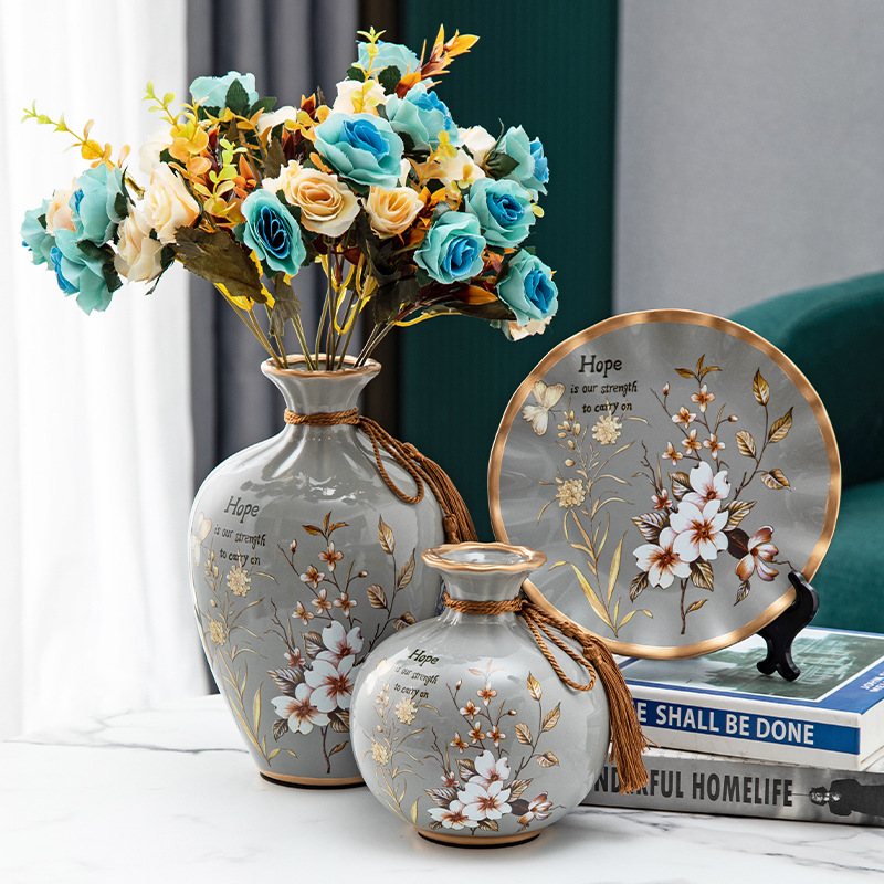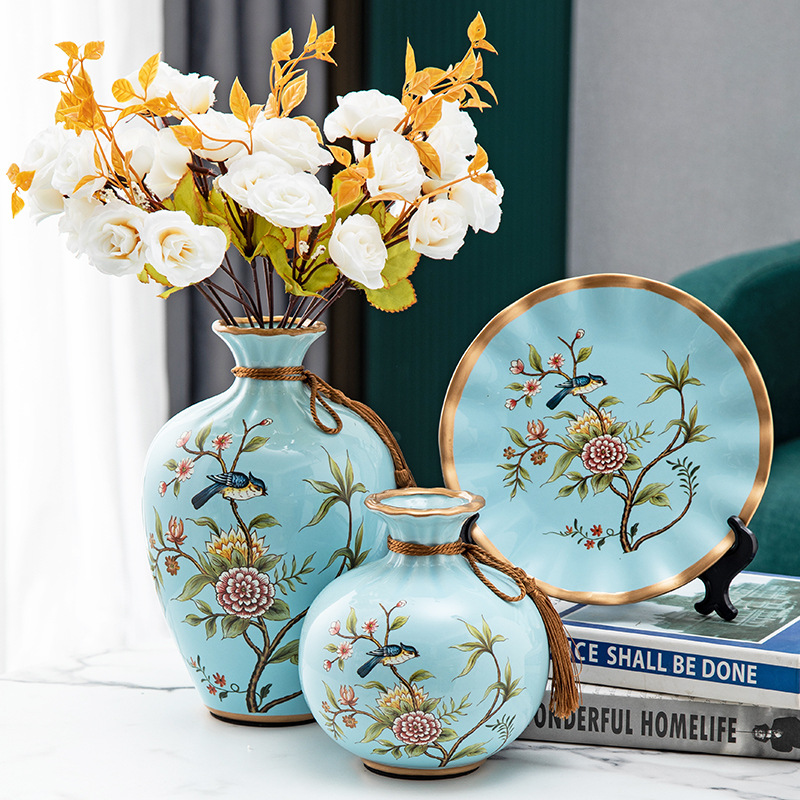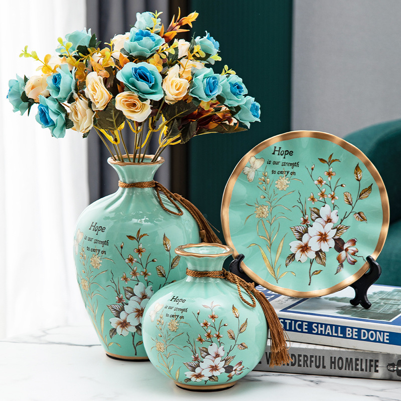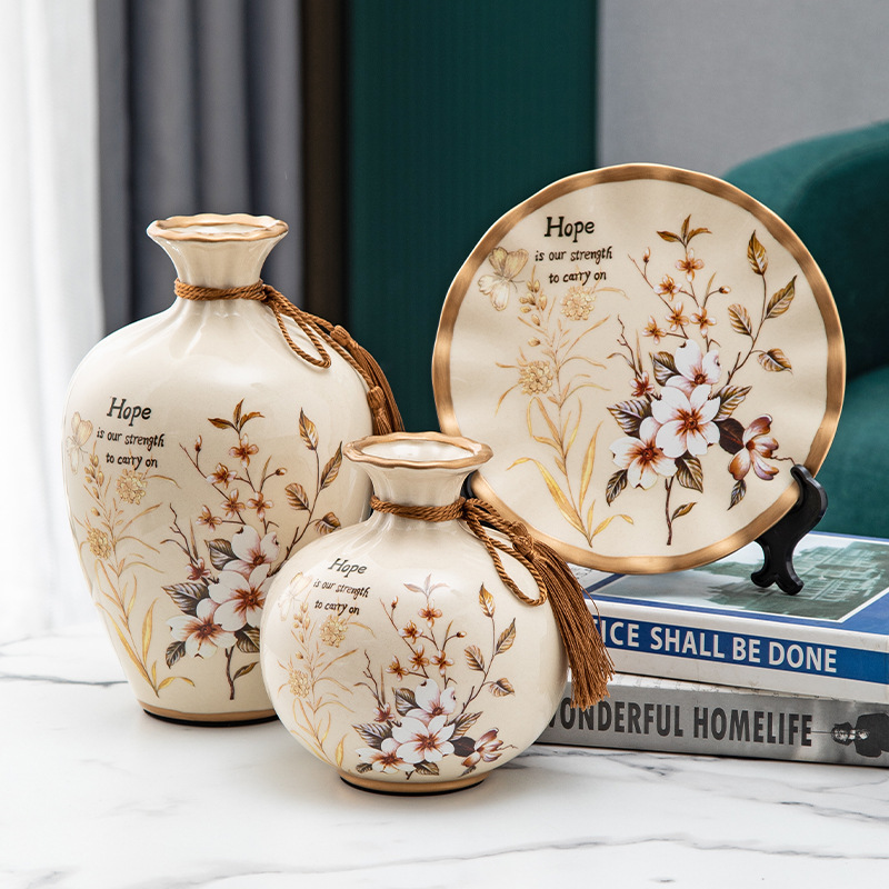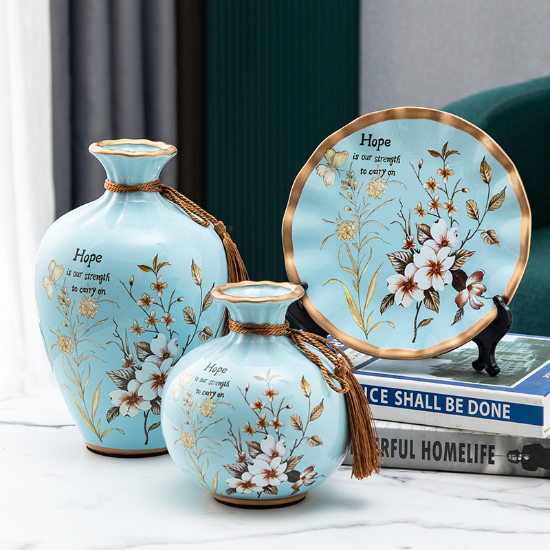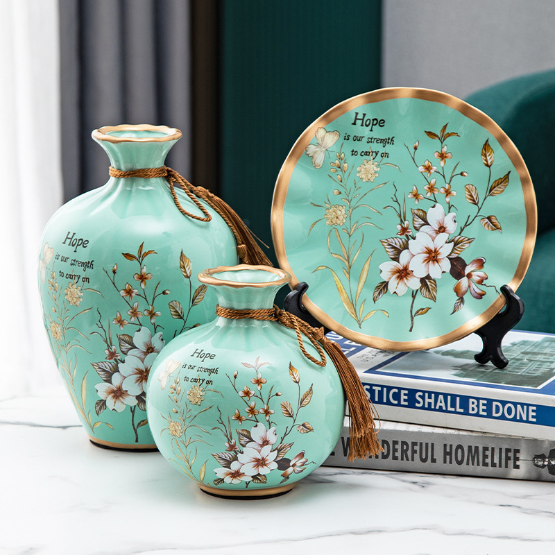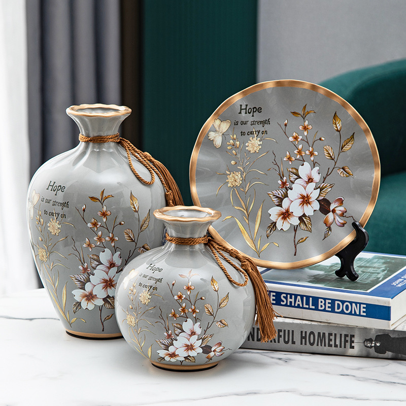 세라믹 꽃병 3 조각 세트 현대 북미 거실 입구 TV 와인 캐비닛 장식 삽화