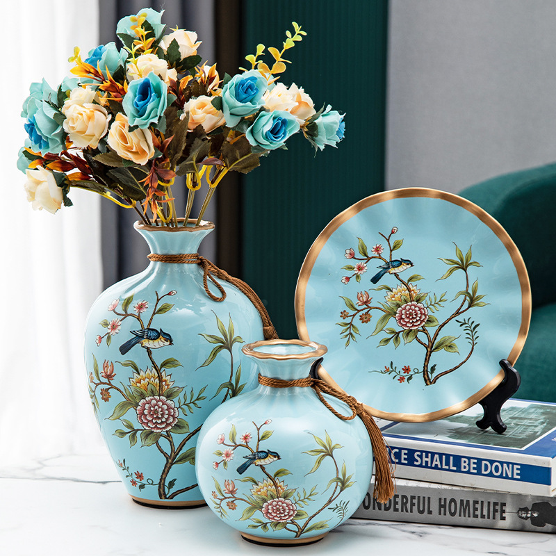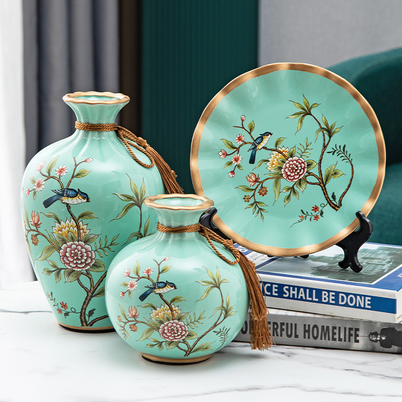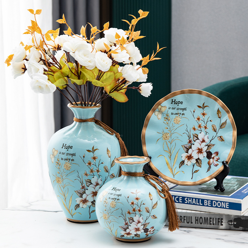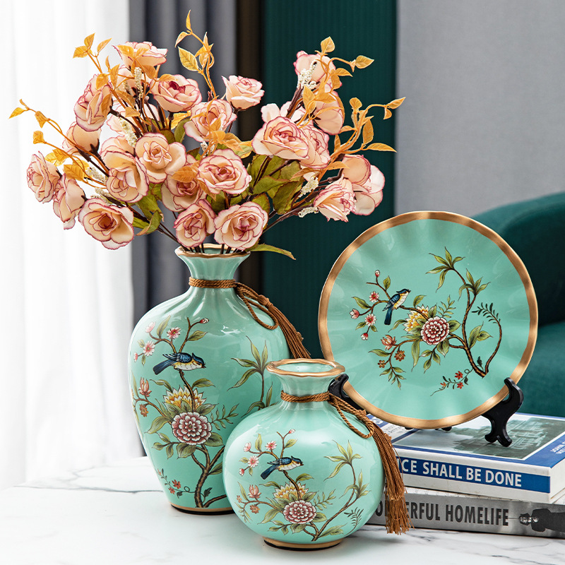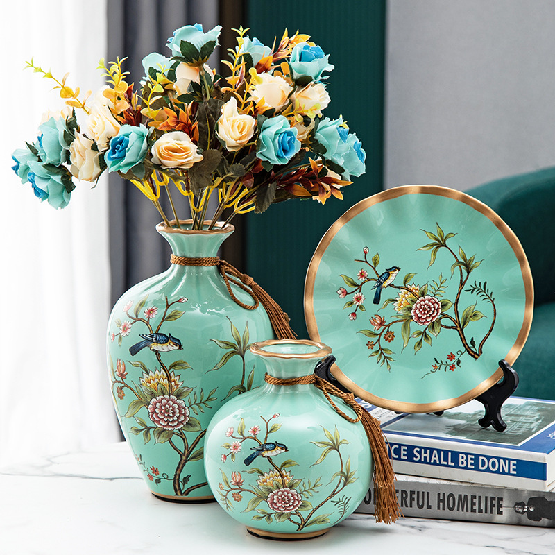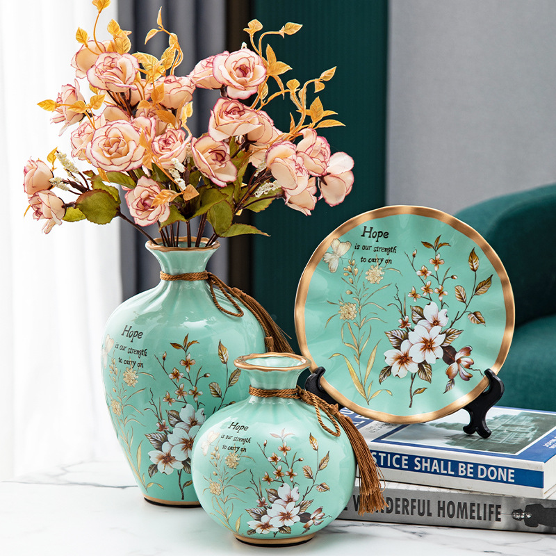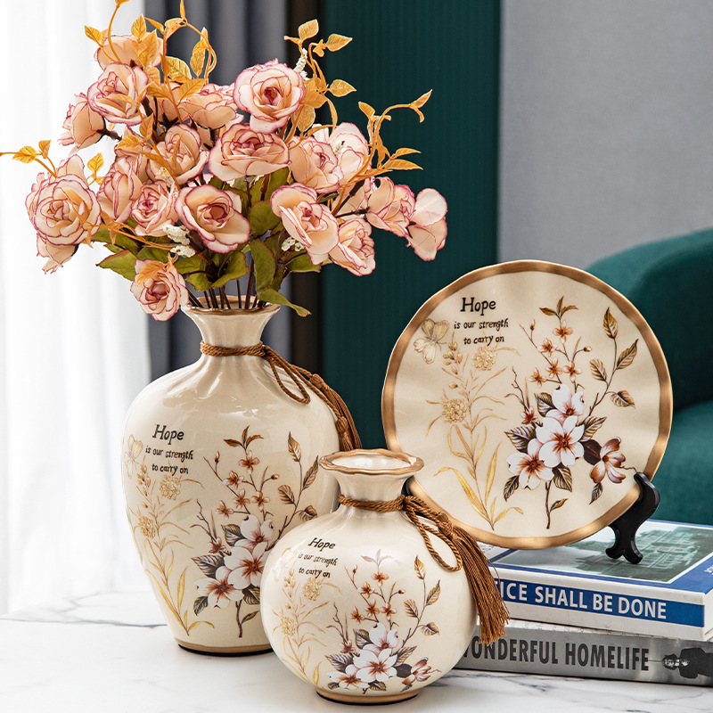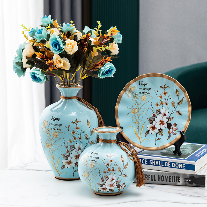 세라믹 꽃병 3 조각 세트 현대 북미 거실 입구 TV 와인 캐비닛 장식 삽화