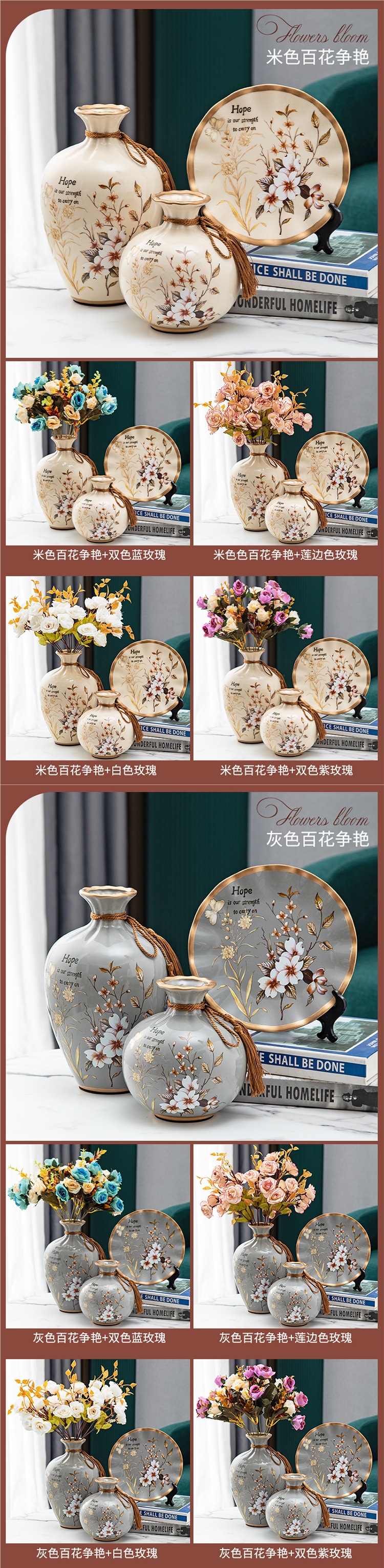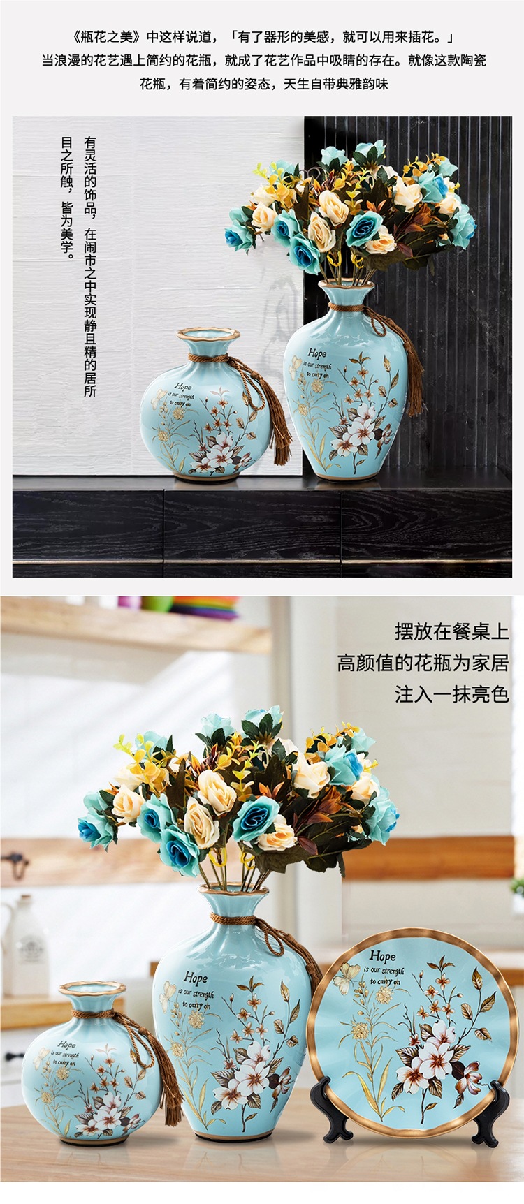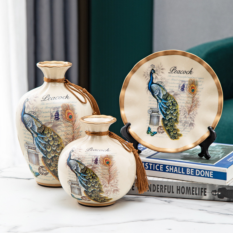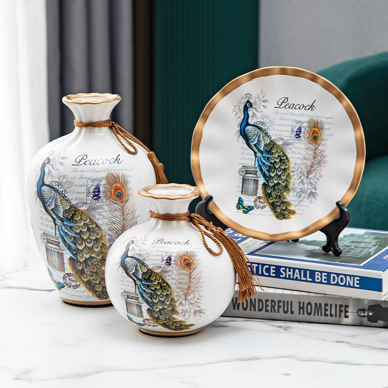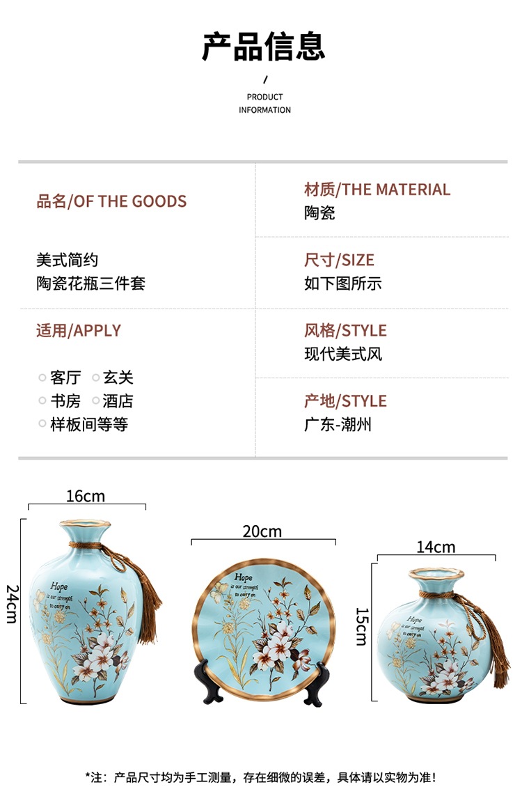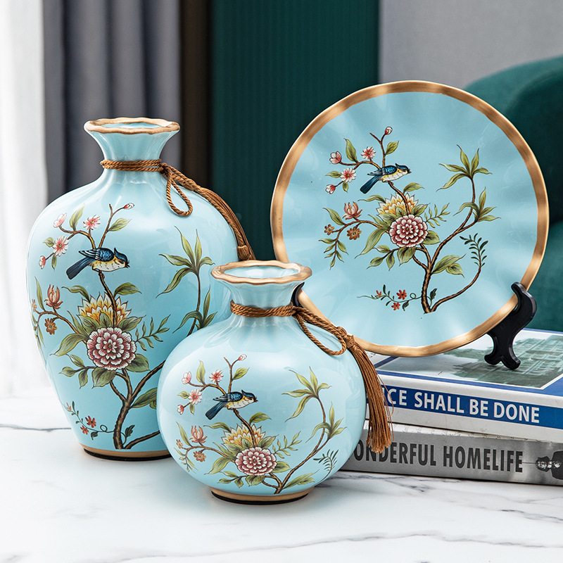 세라믹 꽃병 3 조각 세트 현대 북미 거실 입구 TV 와인 캐비닛 장식 삽화