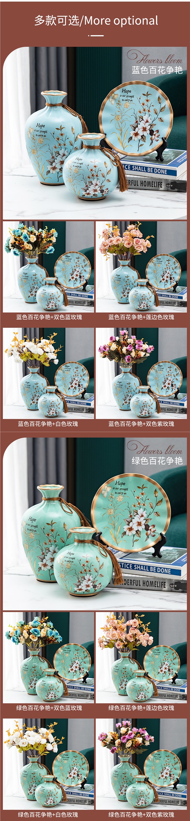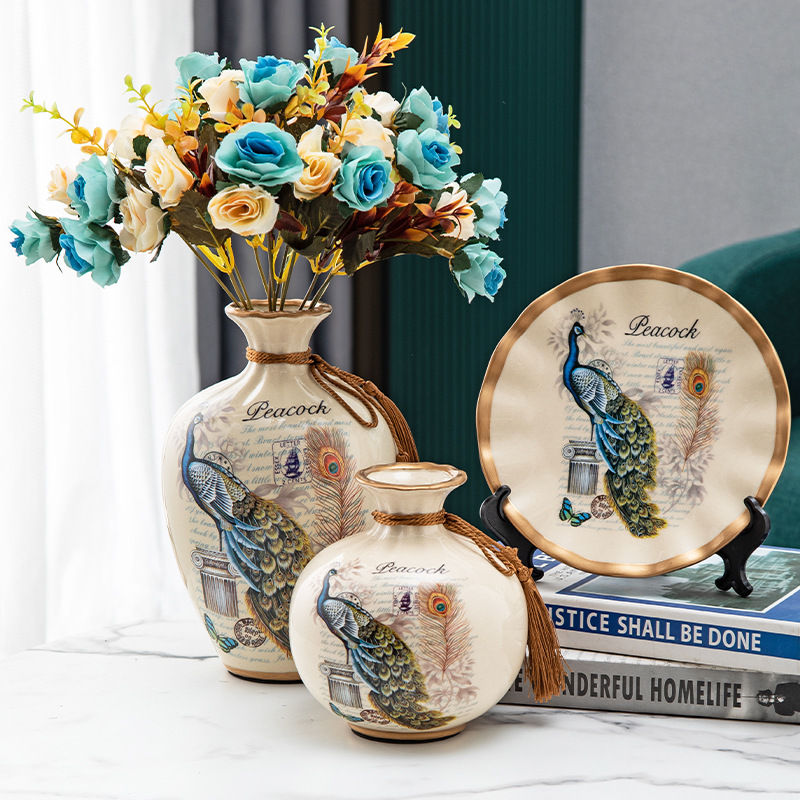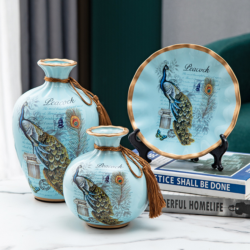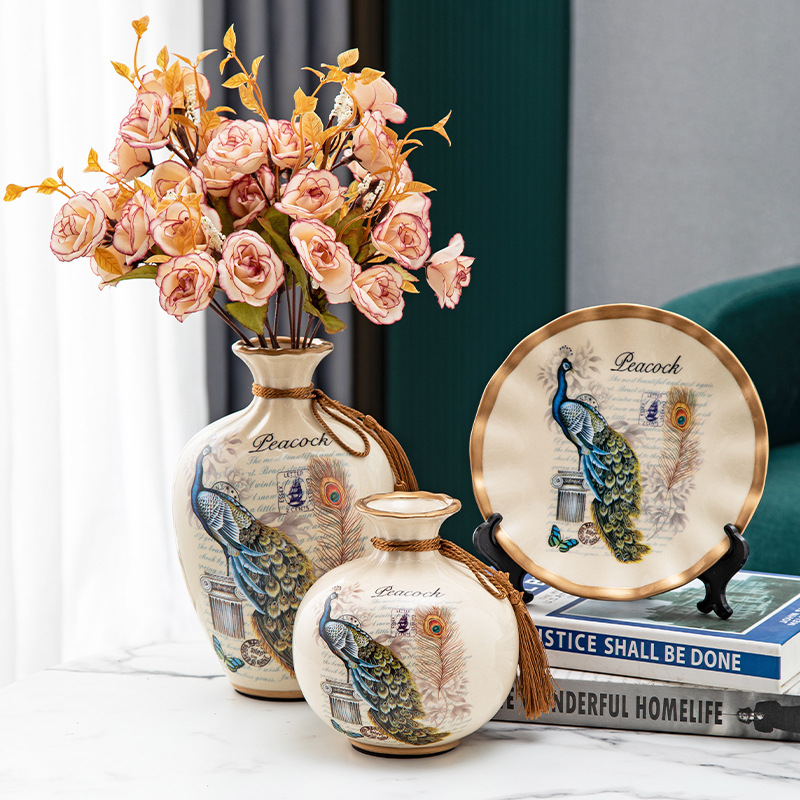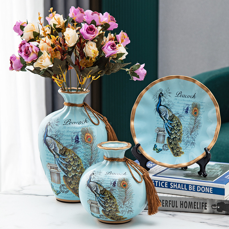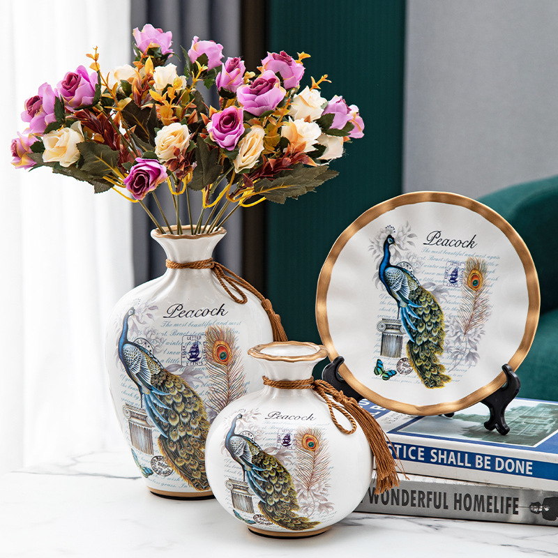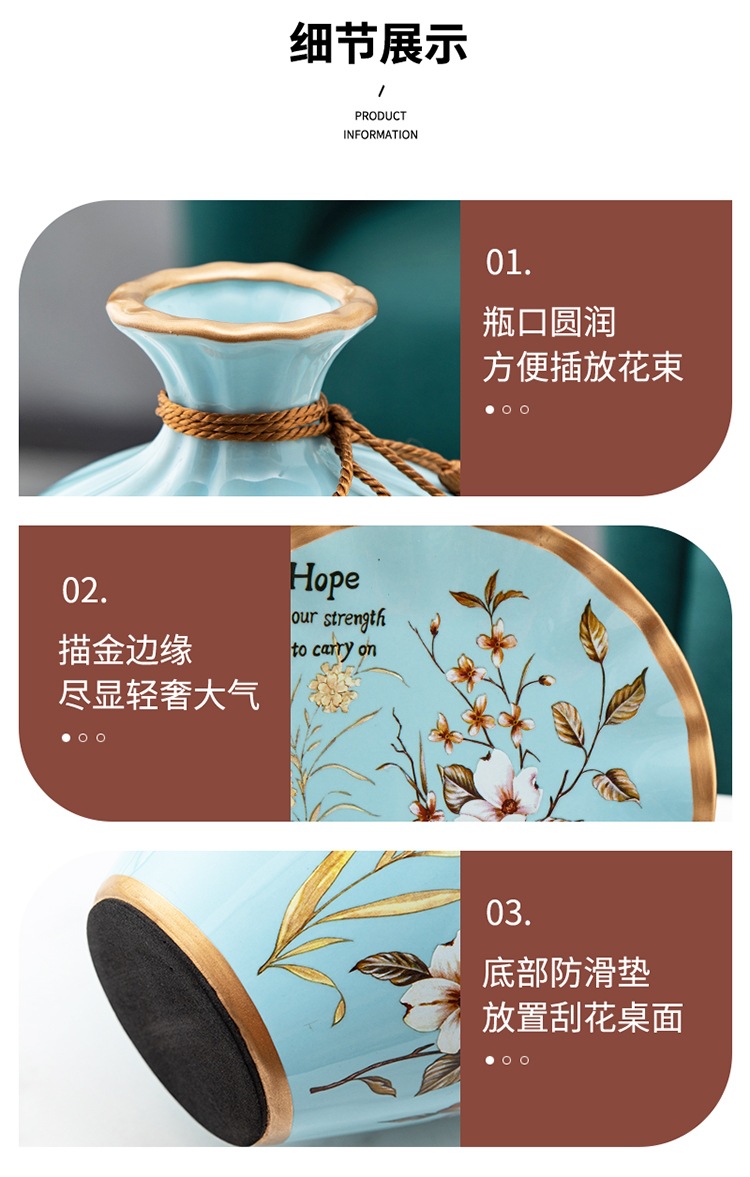 세라믹 꽃병 3 조각 세트 현대 북미 거실 입구 TV 와인 캐비닛 장식 삽화스토어 가기