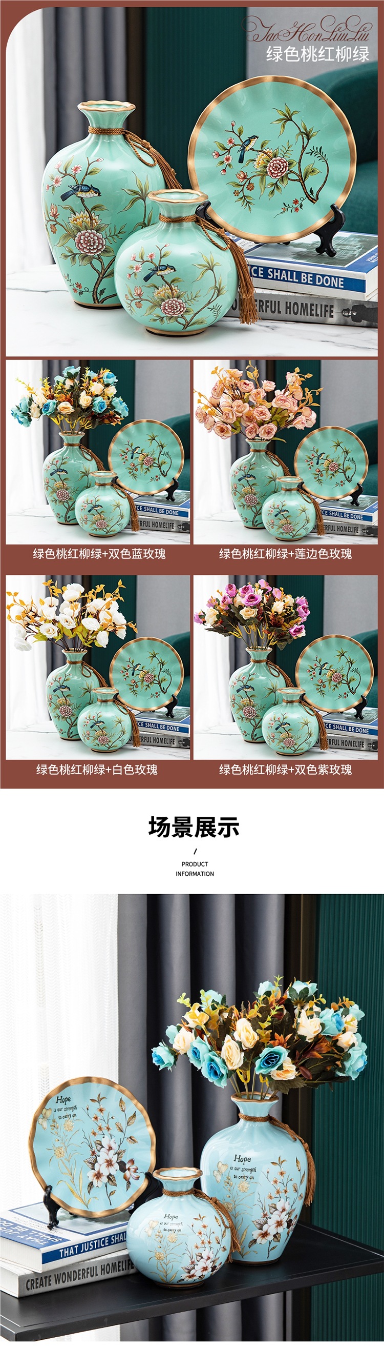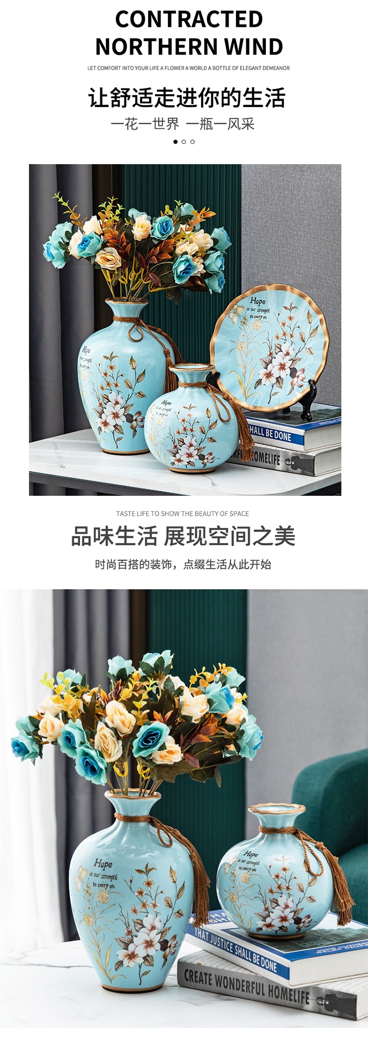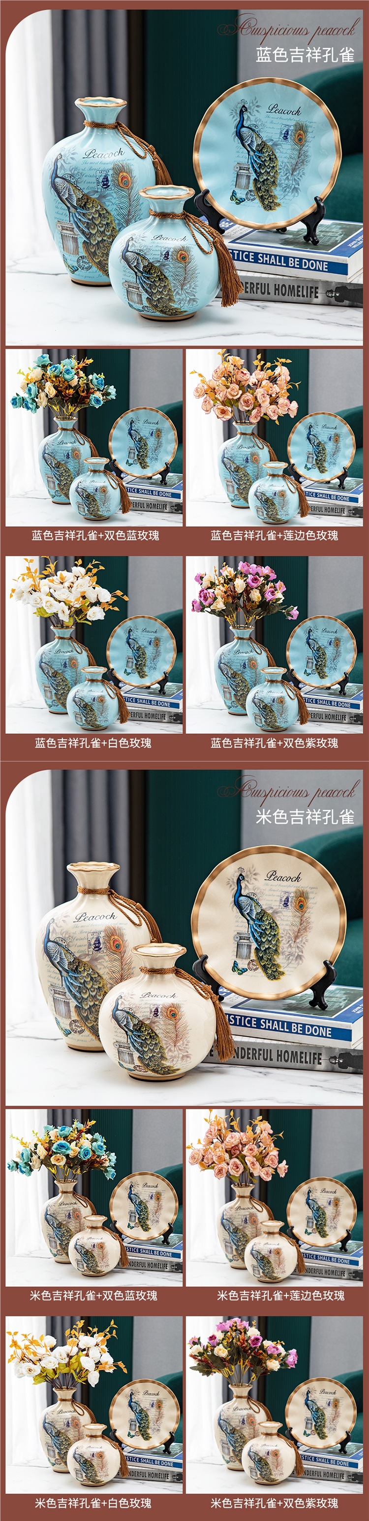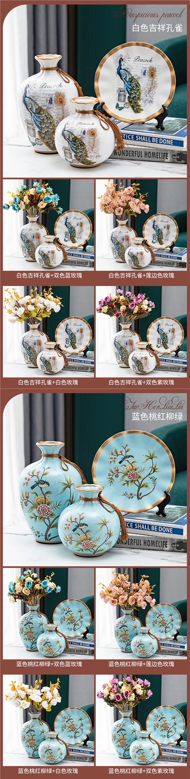 세라믹 꽃병 3 조각 세트 현대 북미 거실 입구 TV 와인 캐비닛 장식 삽화스토어 가기